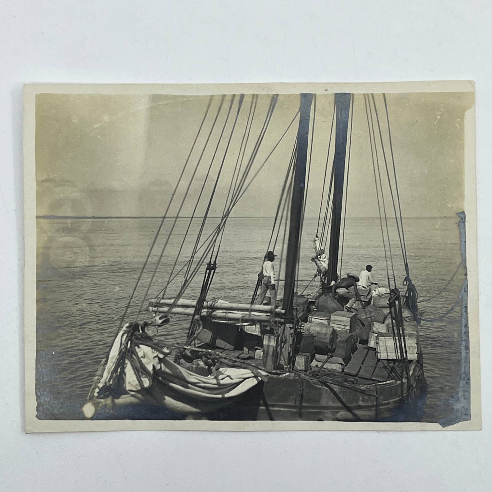 1903 Original Sepia Photograph Loaded Cargo Barge at Tuxpam Mexico AC7