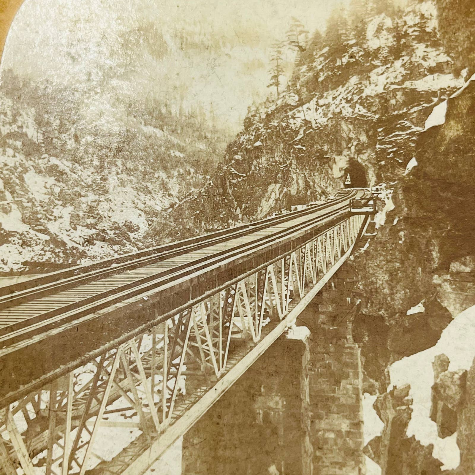 1903 Stereoview Canadian Pacific Railway White Creek Bridge Fraser Canyon BC