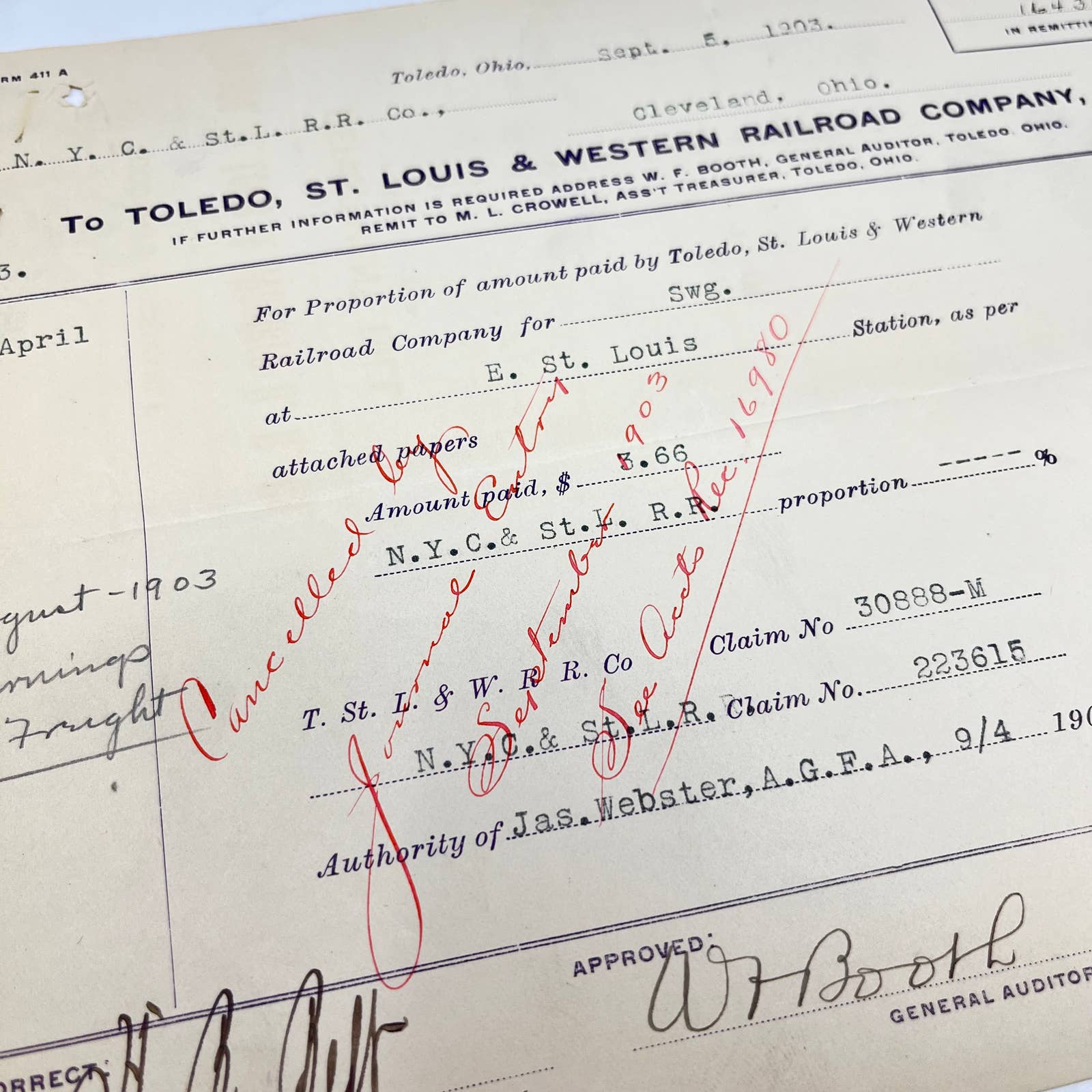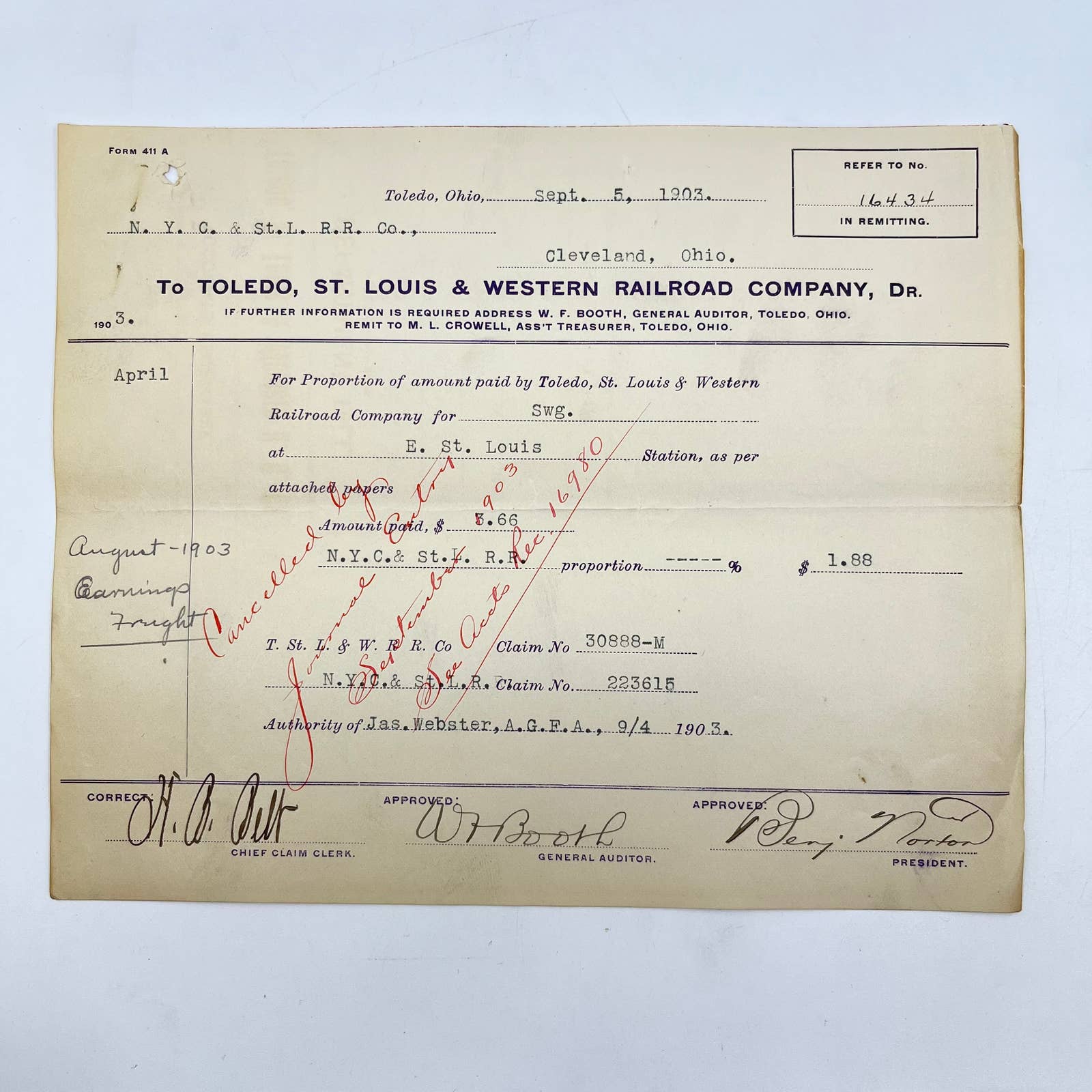 1903 Toledo, St. Louis & Western Railroad RR Receipt Letterhead 16434 AA9