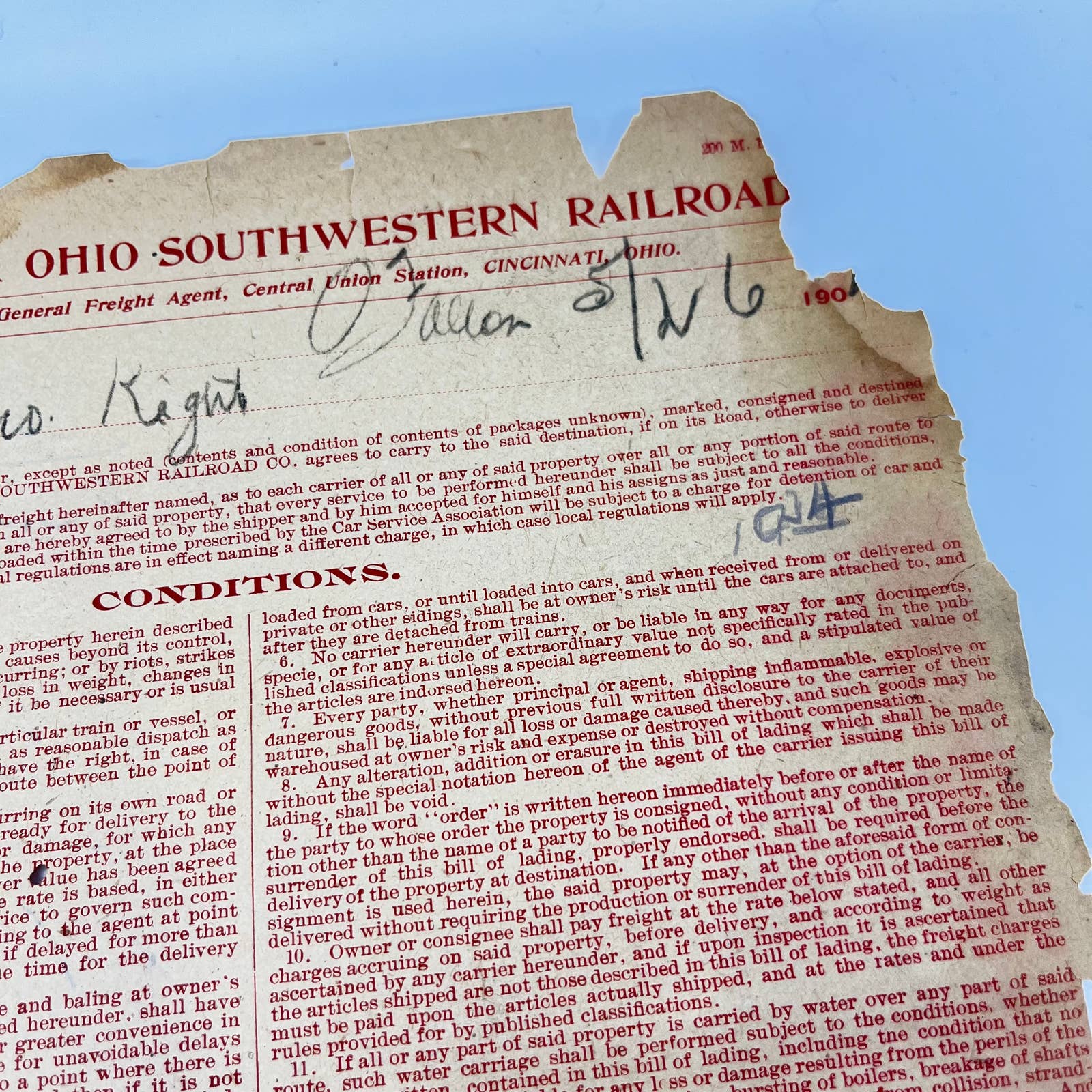 1904 Baltimore & Ohio Southwestern Railroad RR Letterhead Bill of Lading AA9