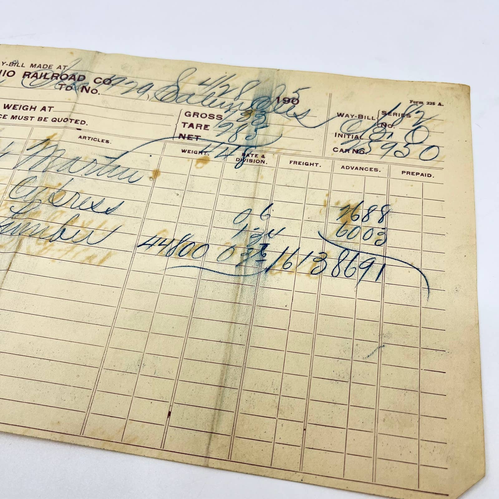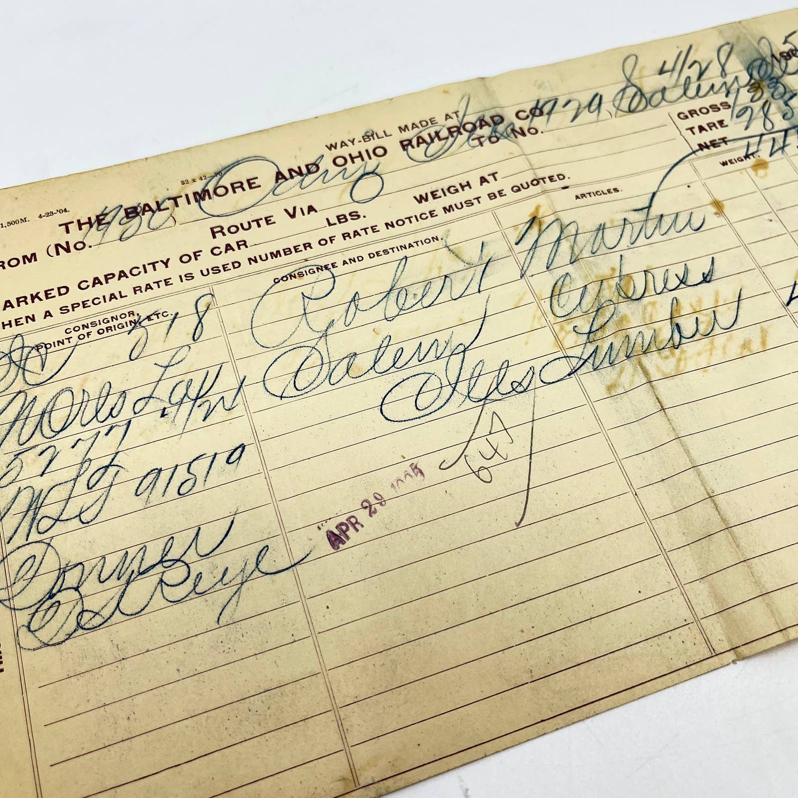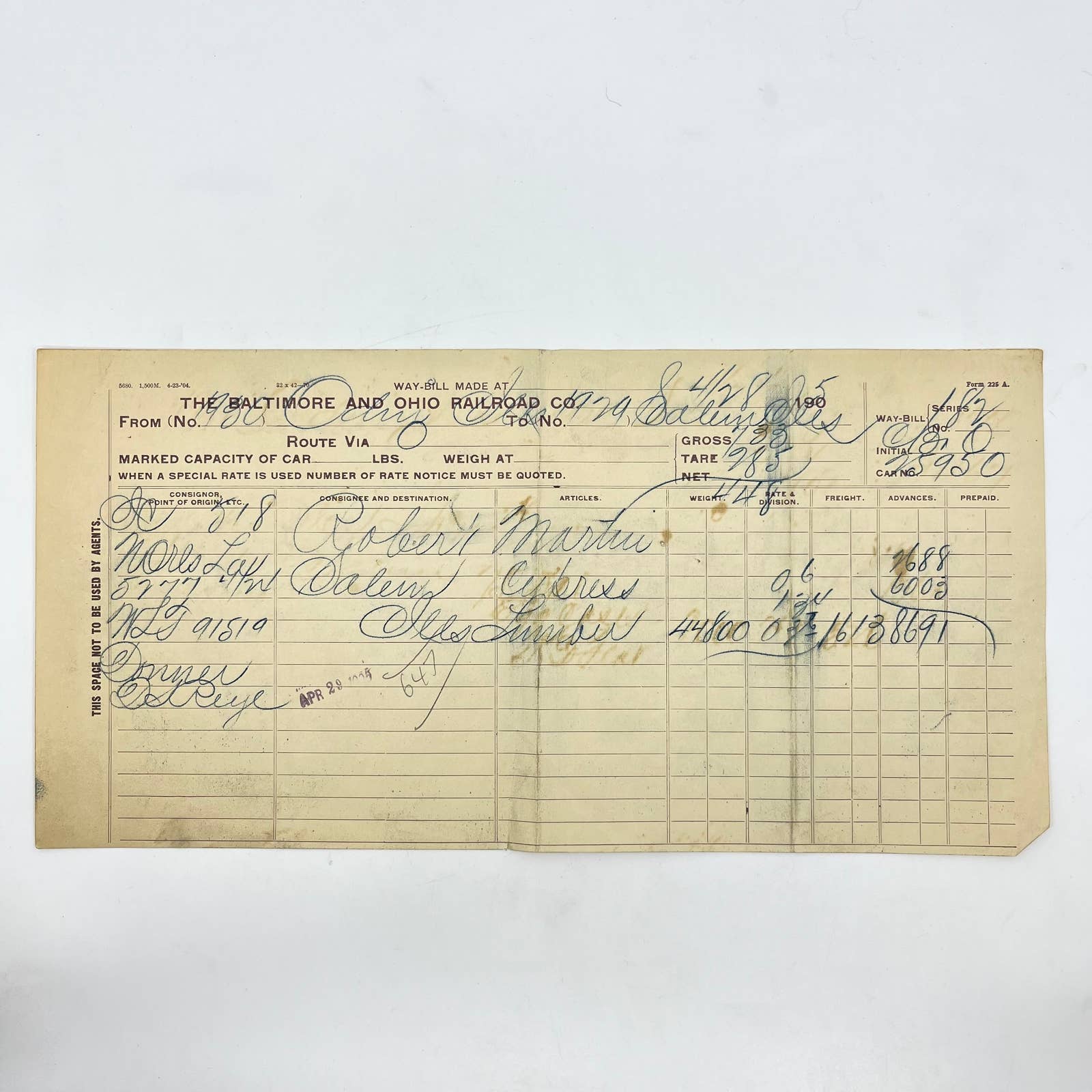 1905 Baltimore & Ohio Railroad RR Letterhead Way Bill Receipt Bill of Lading AA9