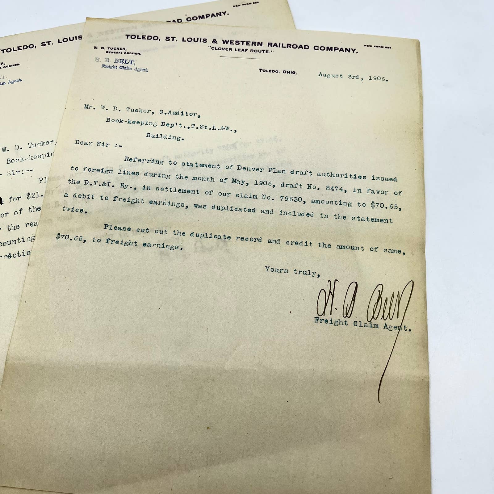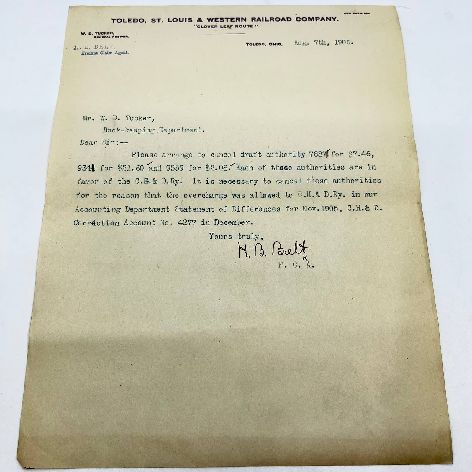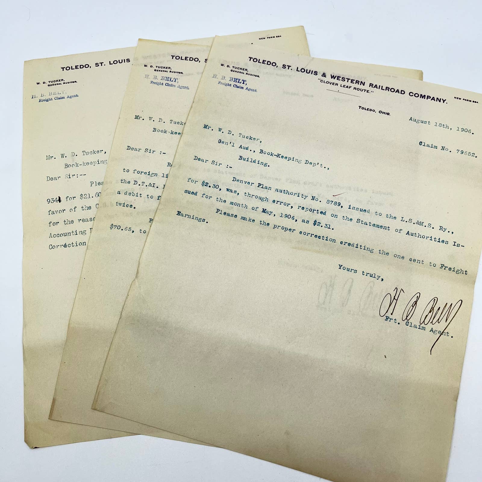 1906 Toledo, St. Louis & Western Railroad RR Letterhead Memo Lot of 3 AA9-3