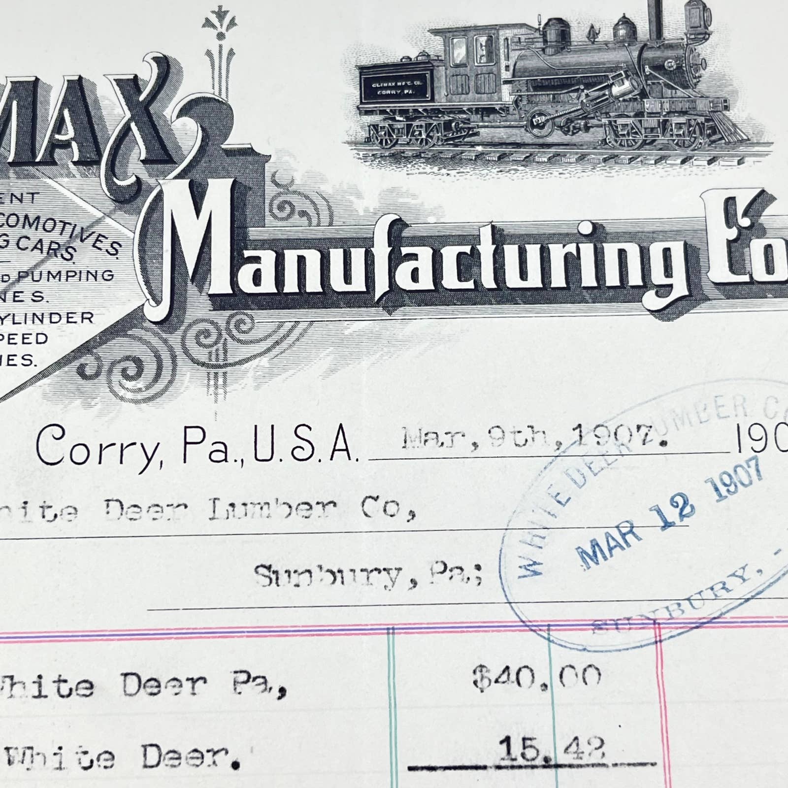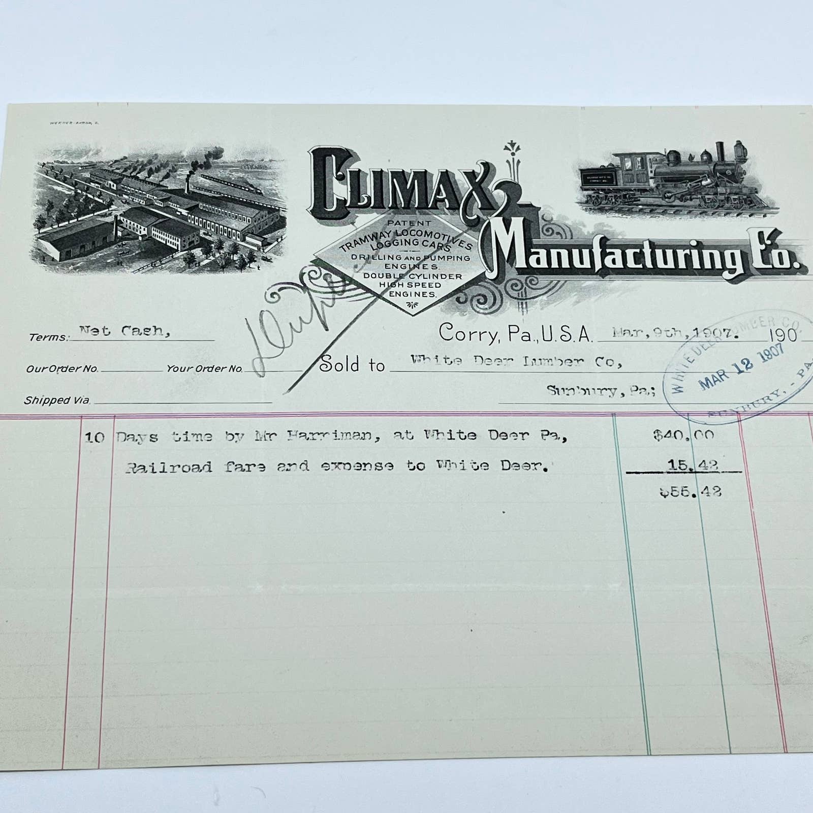 1907 Climax Manufacturing Co. Trainway Locomotive Letterhead Corry PA AB2