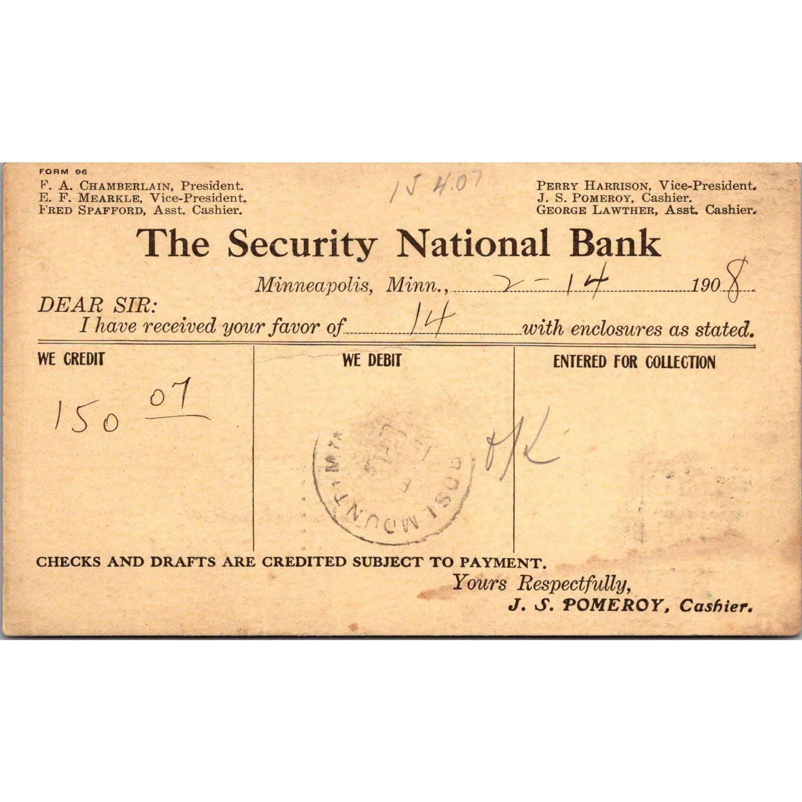 1908 The Security National Bank of Minnesota Postal Mailing Card AJ4-H2