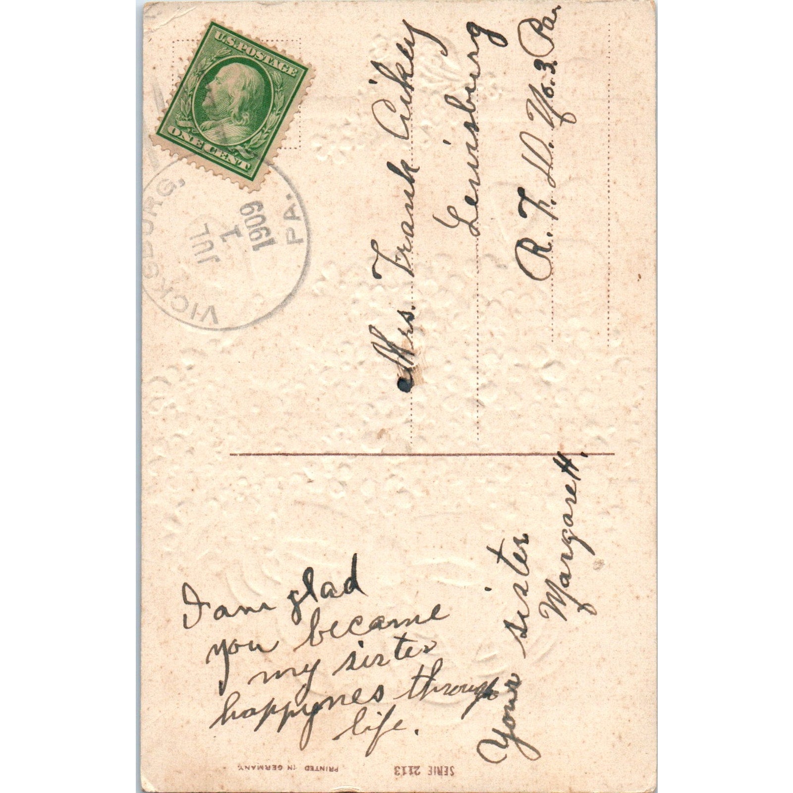 1909 Best Wishes Red Butterflies Forget-Me-Not Embossed Antique Postcard PD8
