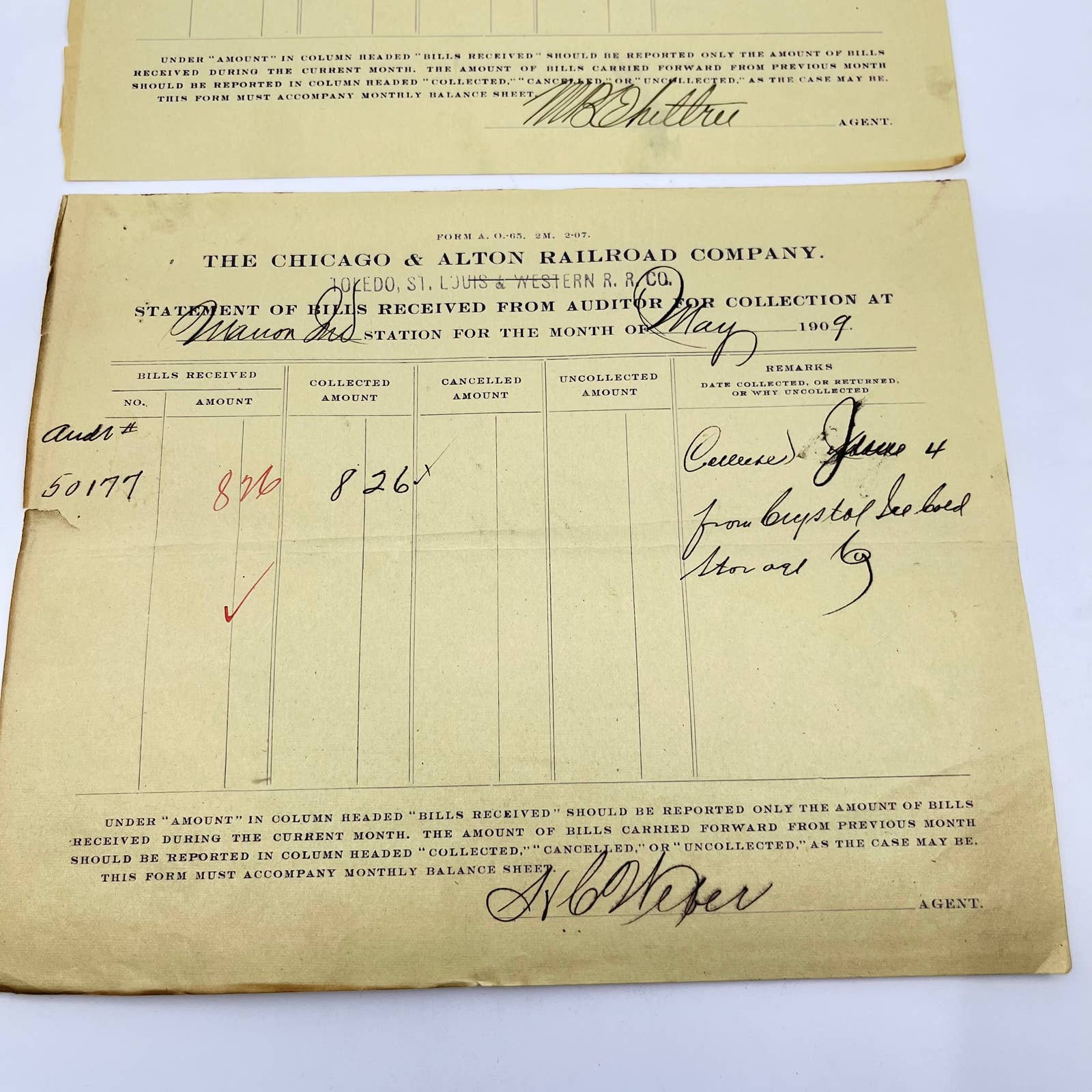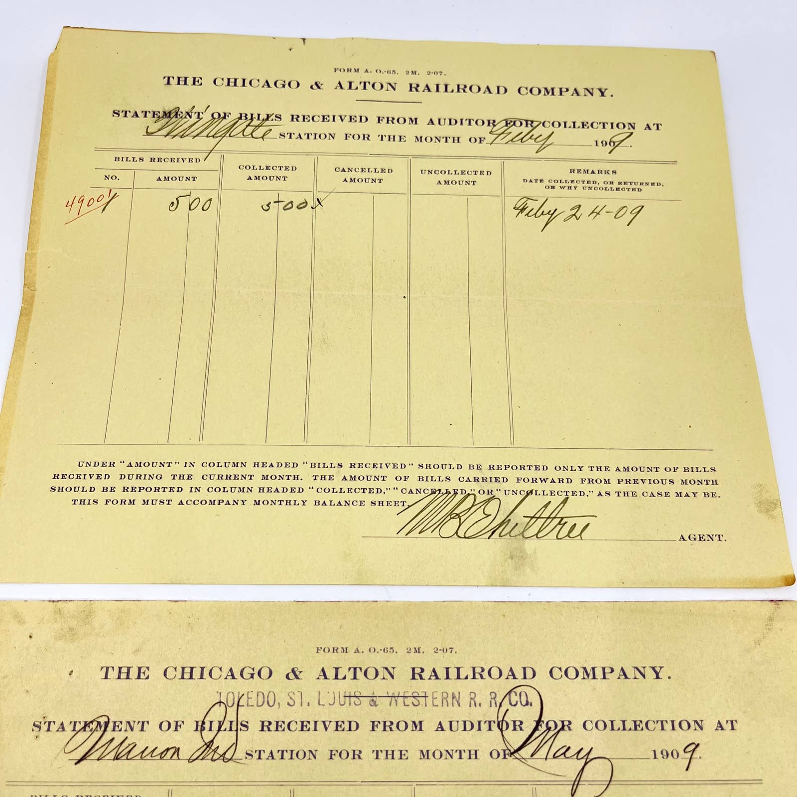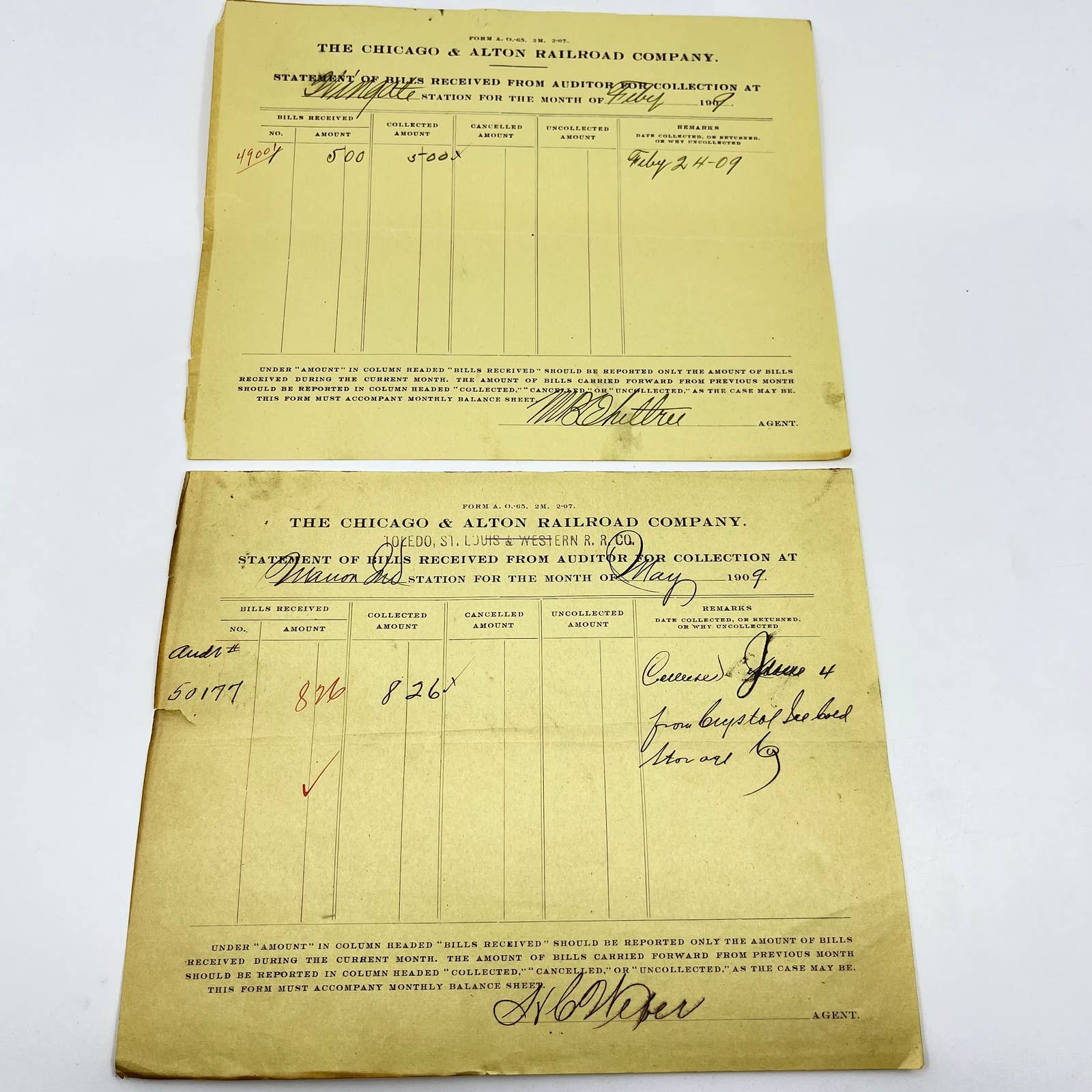1909 Chicago & Alton Railroad Company Statement of Bills Received Lot of 2 AB1-1
