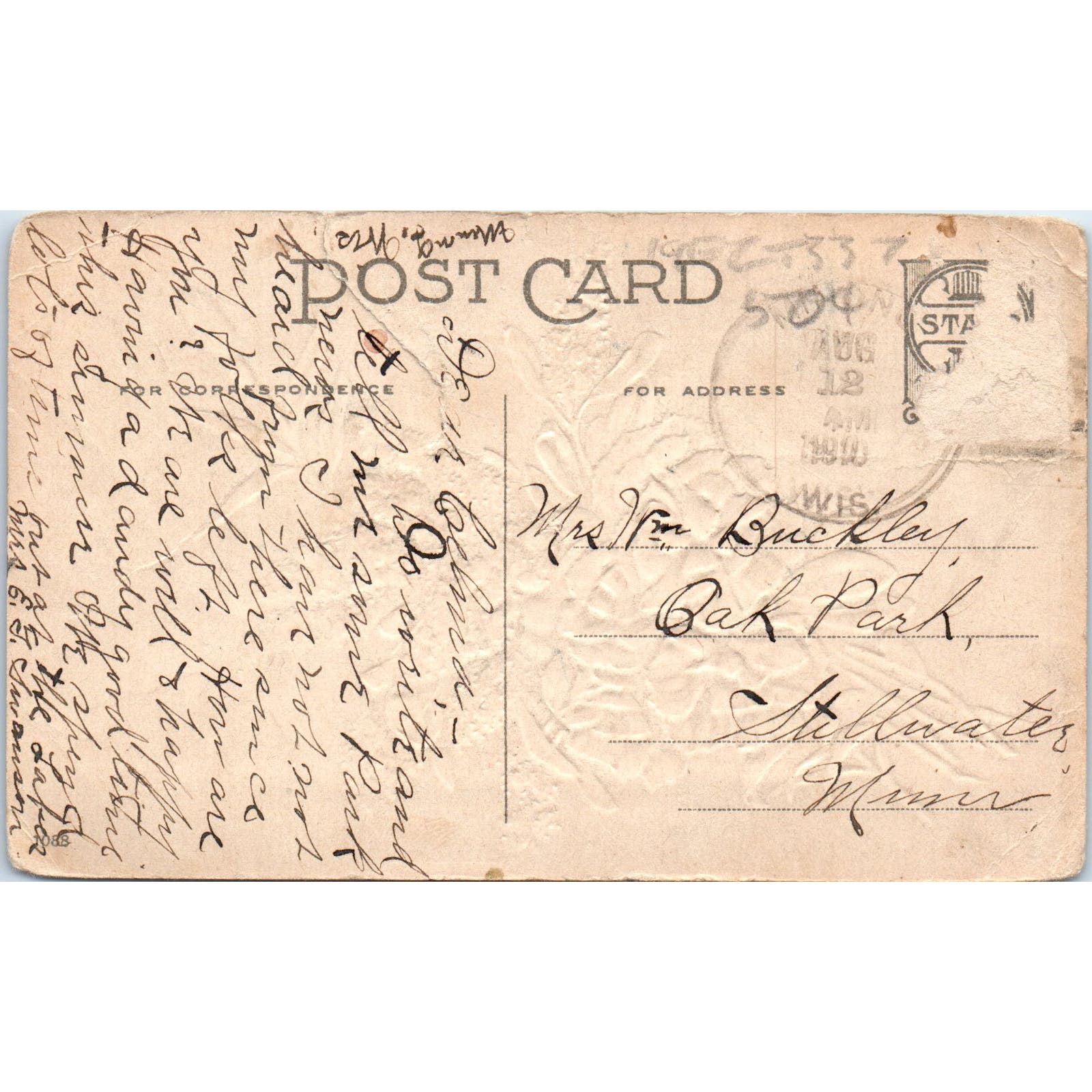 1910 Floral With Scene From Minong Wisconsin Attached Antique RPPC Postcard AE2