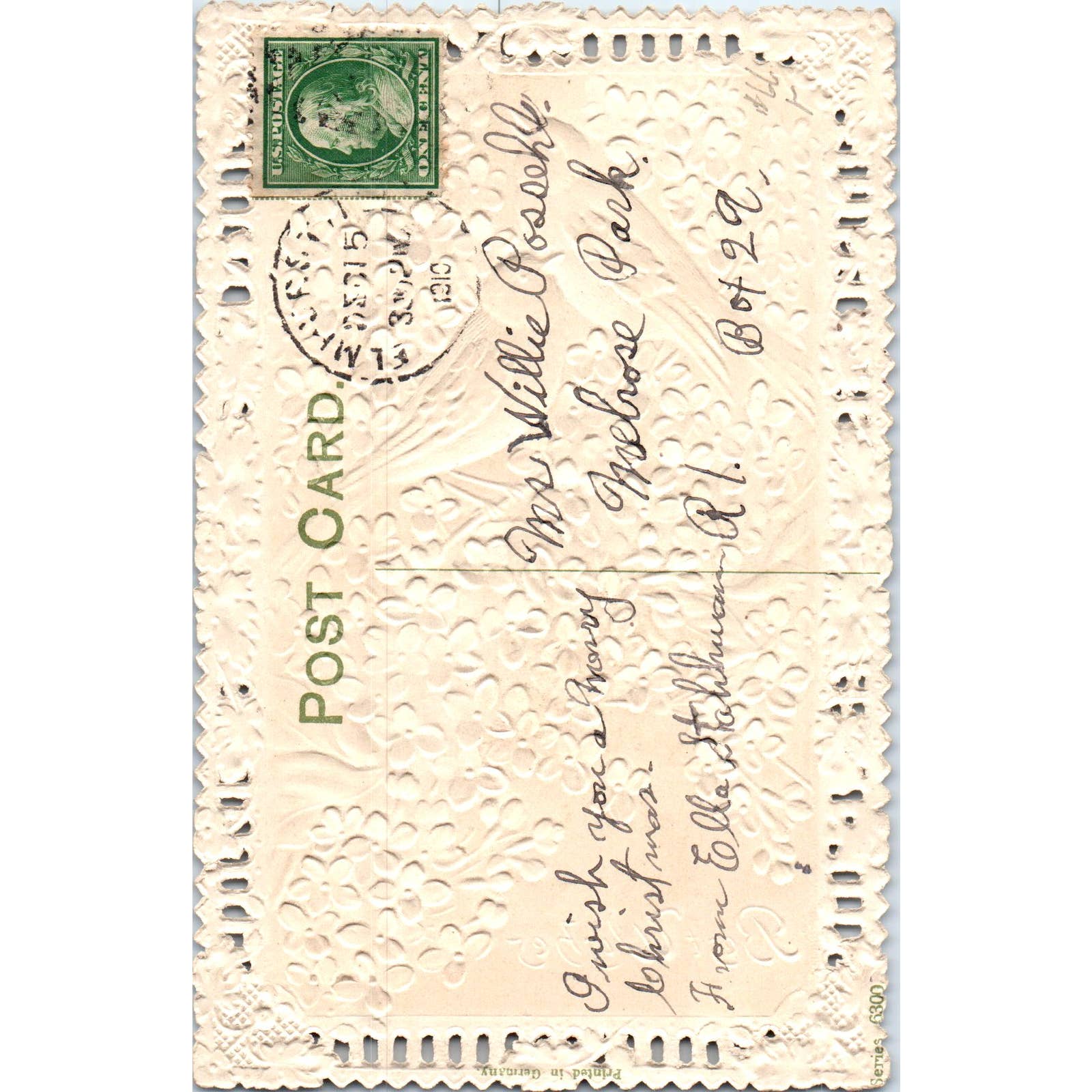 1910 Flowers & Birds Die Cut Lace Border Best Wishes Original Postcard TK1-P15
