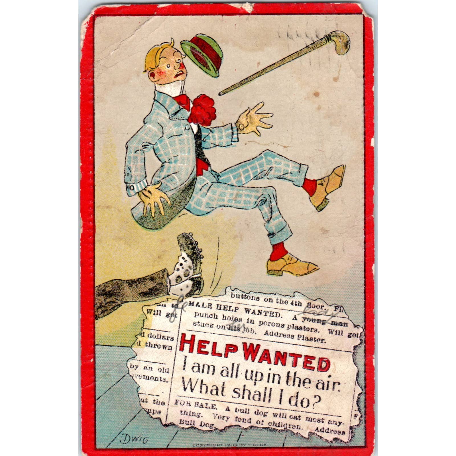 1910 Help Wanted I'm All Up In The Air Original Postcard TK1-25