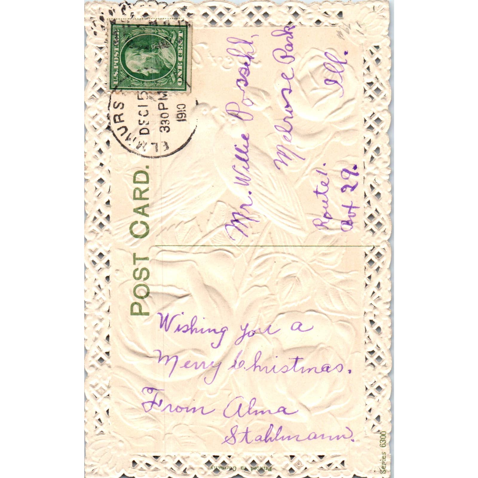 1910 Red Roses Doves Die Cut Lace Border Best Wishes Original Postcard TK1-P15