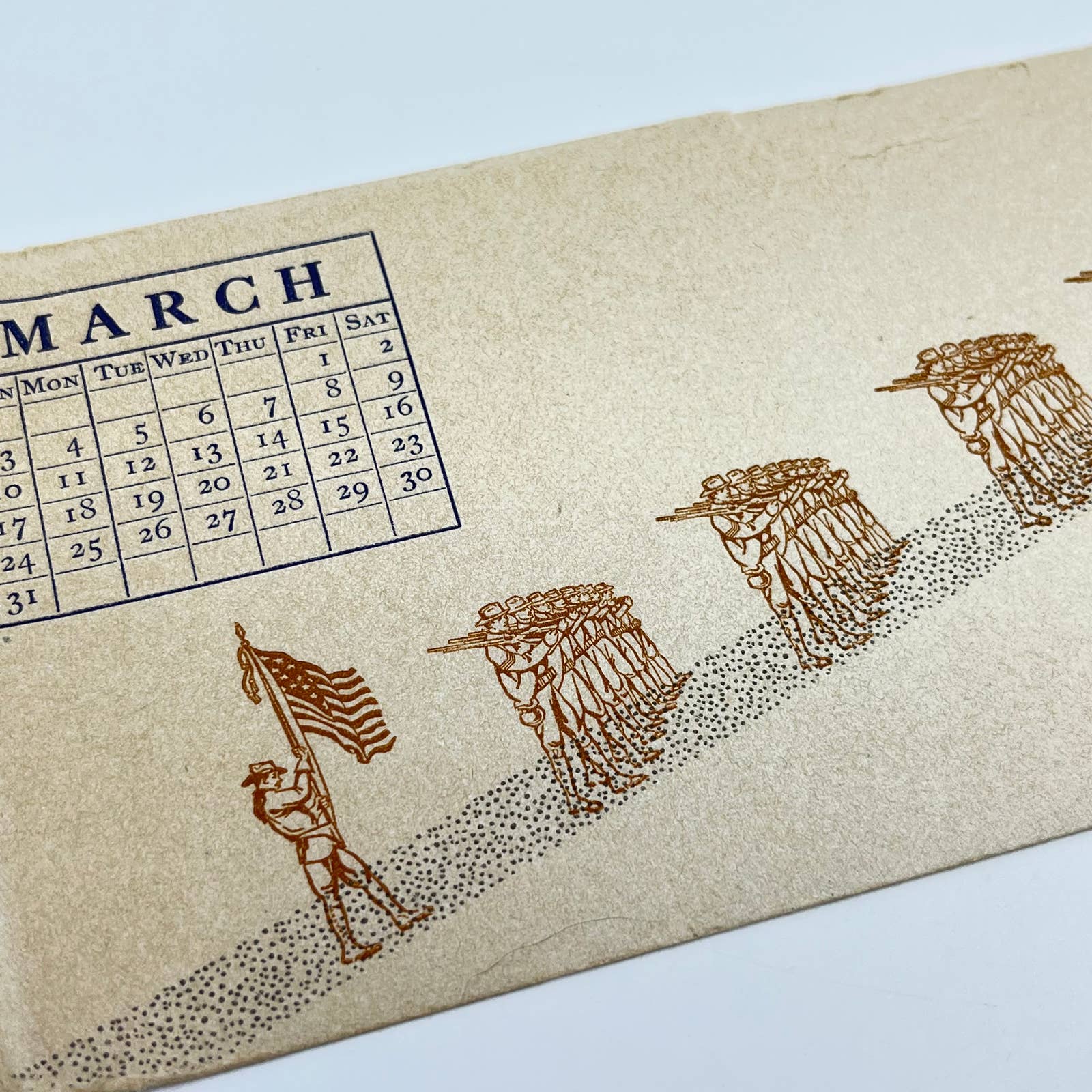 1910s Blotter Card The Rice Press March Calendar Army Soldiers Flint MI SC8