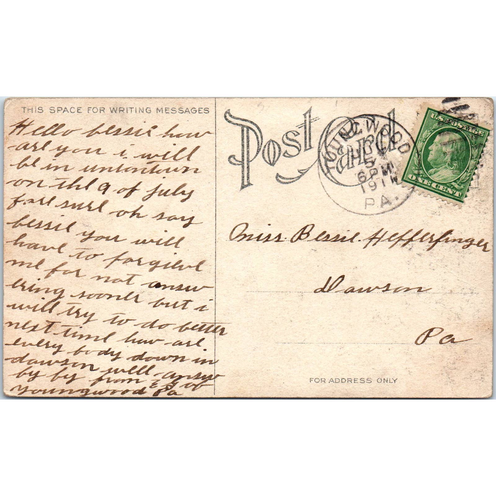 1911 Postcard Knob and Dunbar Camp on the Right Jummonville PA TD9-P1
