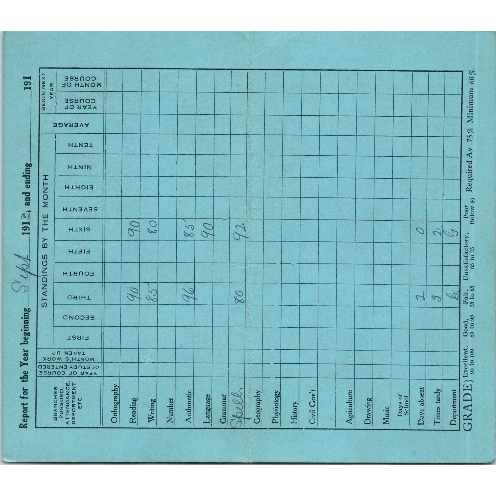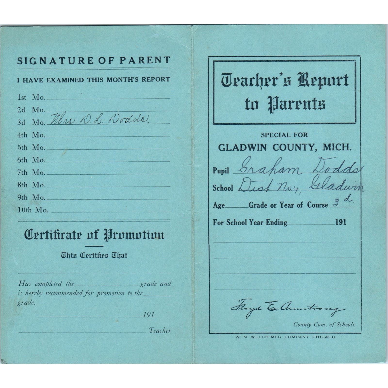 1912 Gladwin County Michigan School Dist No. 4 Report Card Graham Dodds AE6