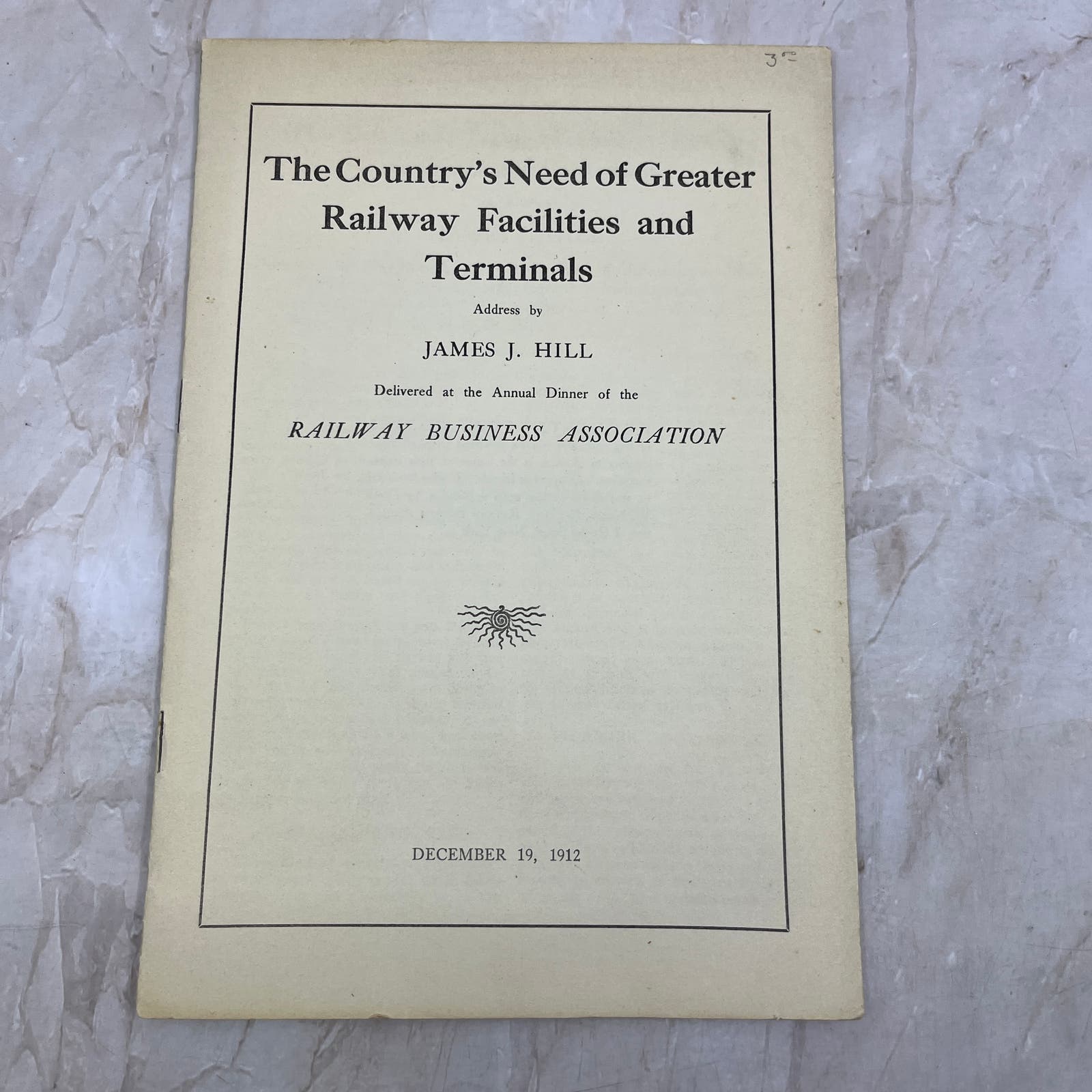 1912 James J. Hill Speech The Country's Need of Greater Railway Facilities TI8-S7