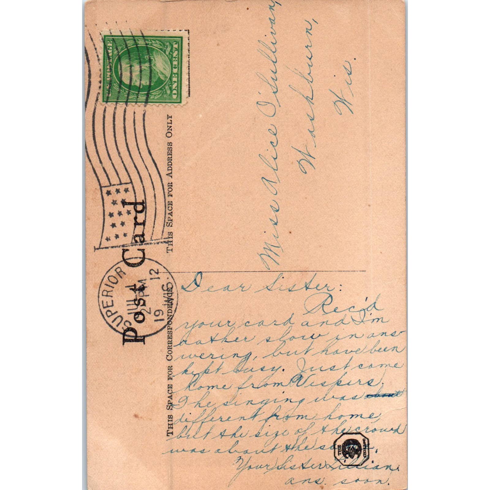 1912 Superior Wisconsin Victorian Lady Flower Hat Original Postcard TK1-P18