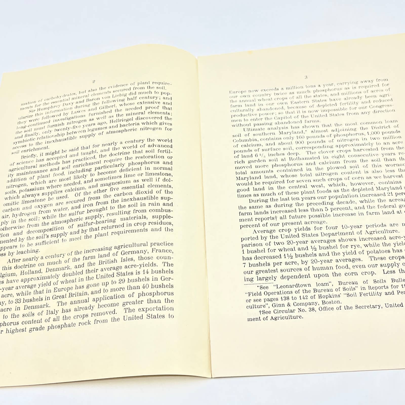 I take it that the only justification for me to review the subject of plant food in relation to soil fertility or crop production is the fact that recent publications from the federal Bureau of Soils have strongly affirmed that there is no necessity of applying plant food in the restoration and maintenance of soil fertility.