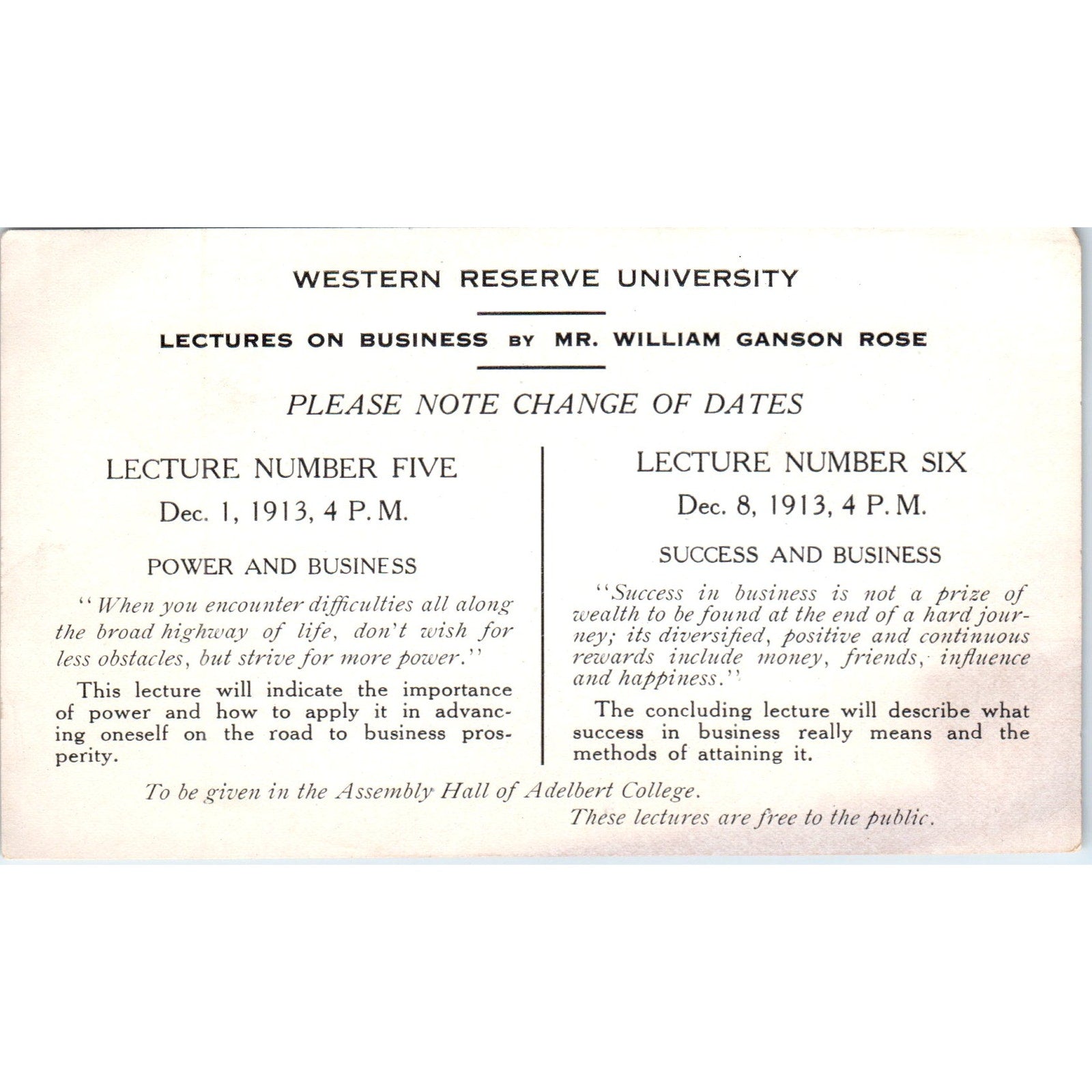1913 Adelbert College Western Reserve University Lecture Card William Ganson Rose AD8-RS1
