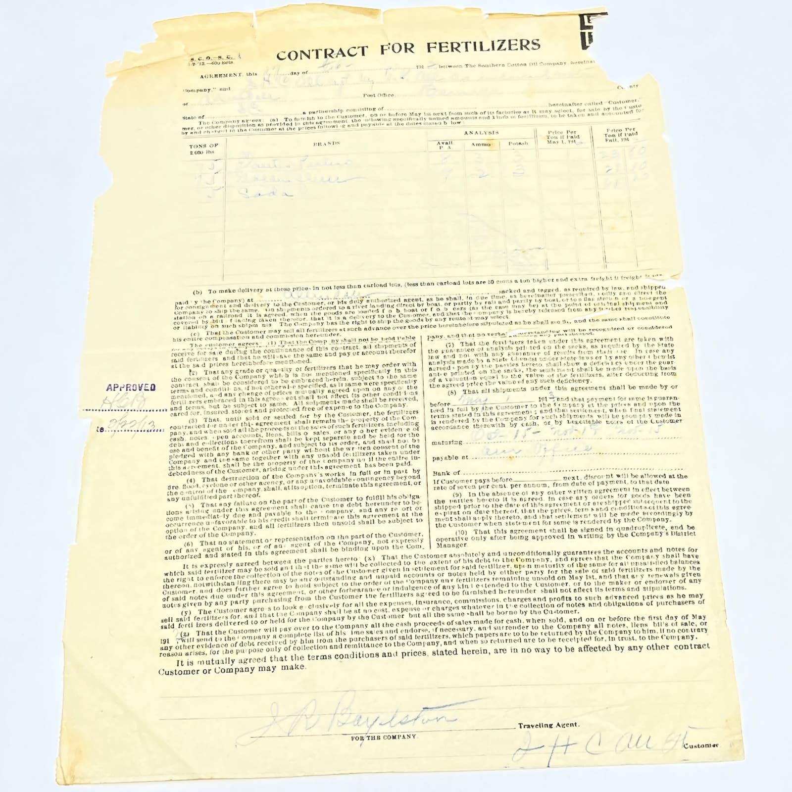 1913 Southern Cotton Oil Company Contract for Fertilizers Allendale SC AB9