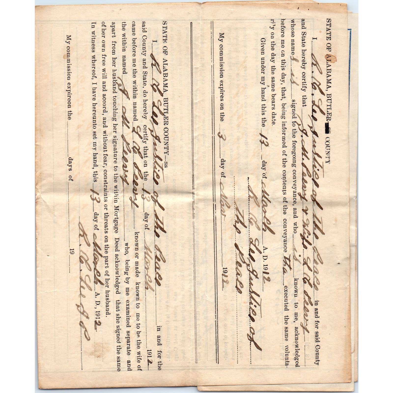 1913 State of Alabama Butler County Mortgage Deed J.M. Peevy AL AD6