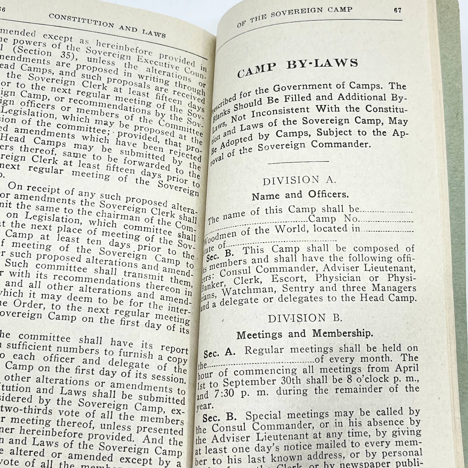 1913 Woodmen Of The World Constitution & By-laws Jacksonville FL TE8-5