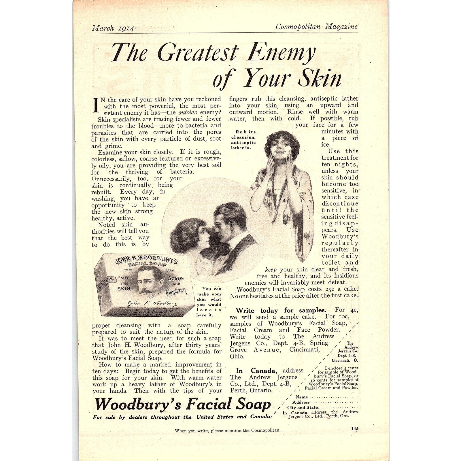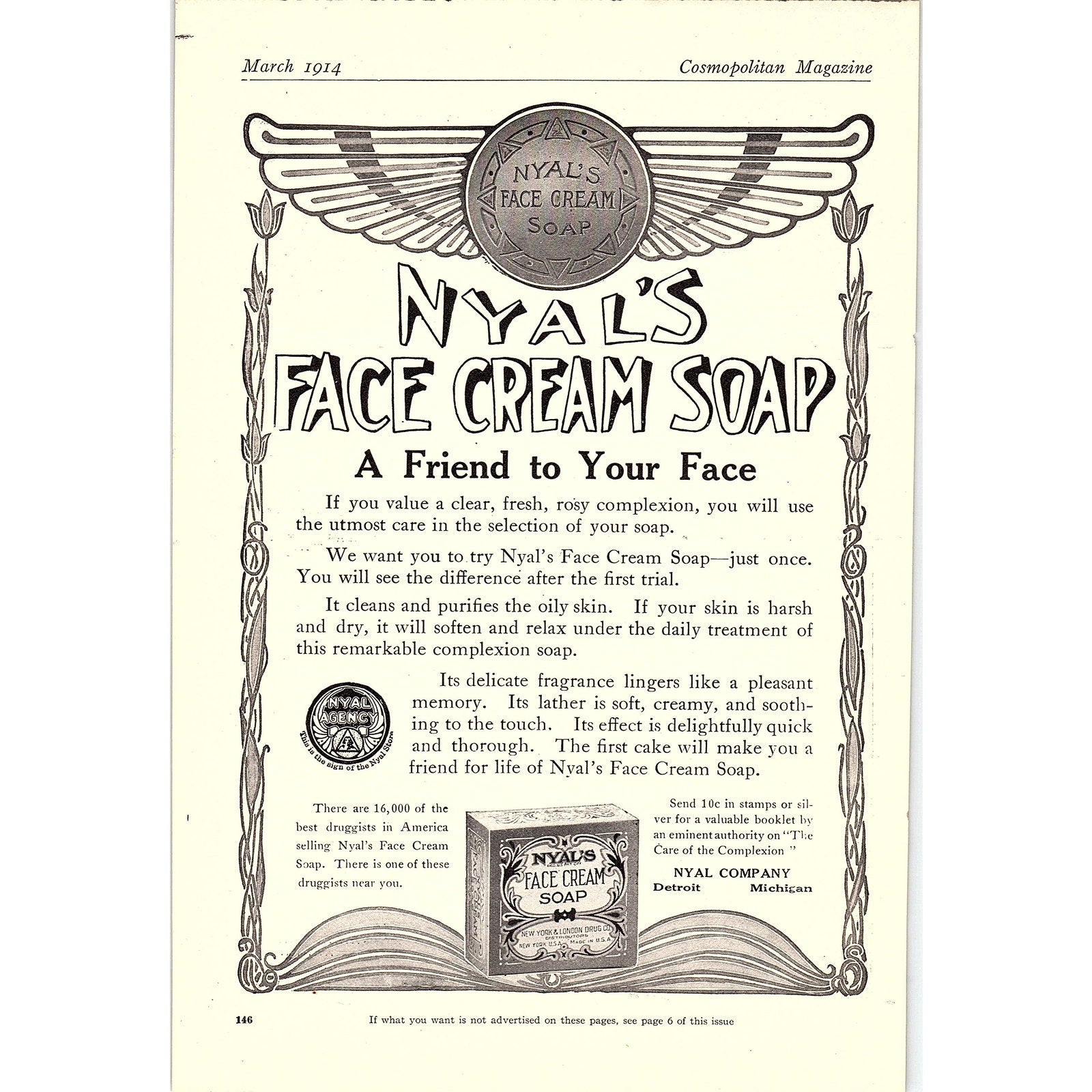 1914 Nyal's Face Cream Soap Antique Magazine Ad 6.5x9.5 V4