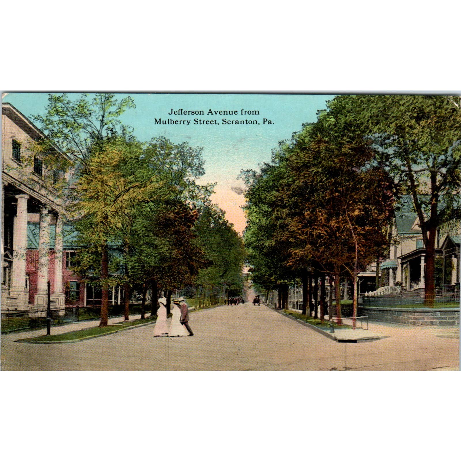 1914 Postcard Jefferson Ave from Mulberry Street Scranton PA TD9-P1