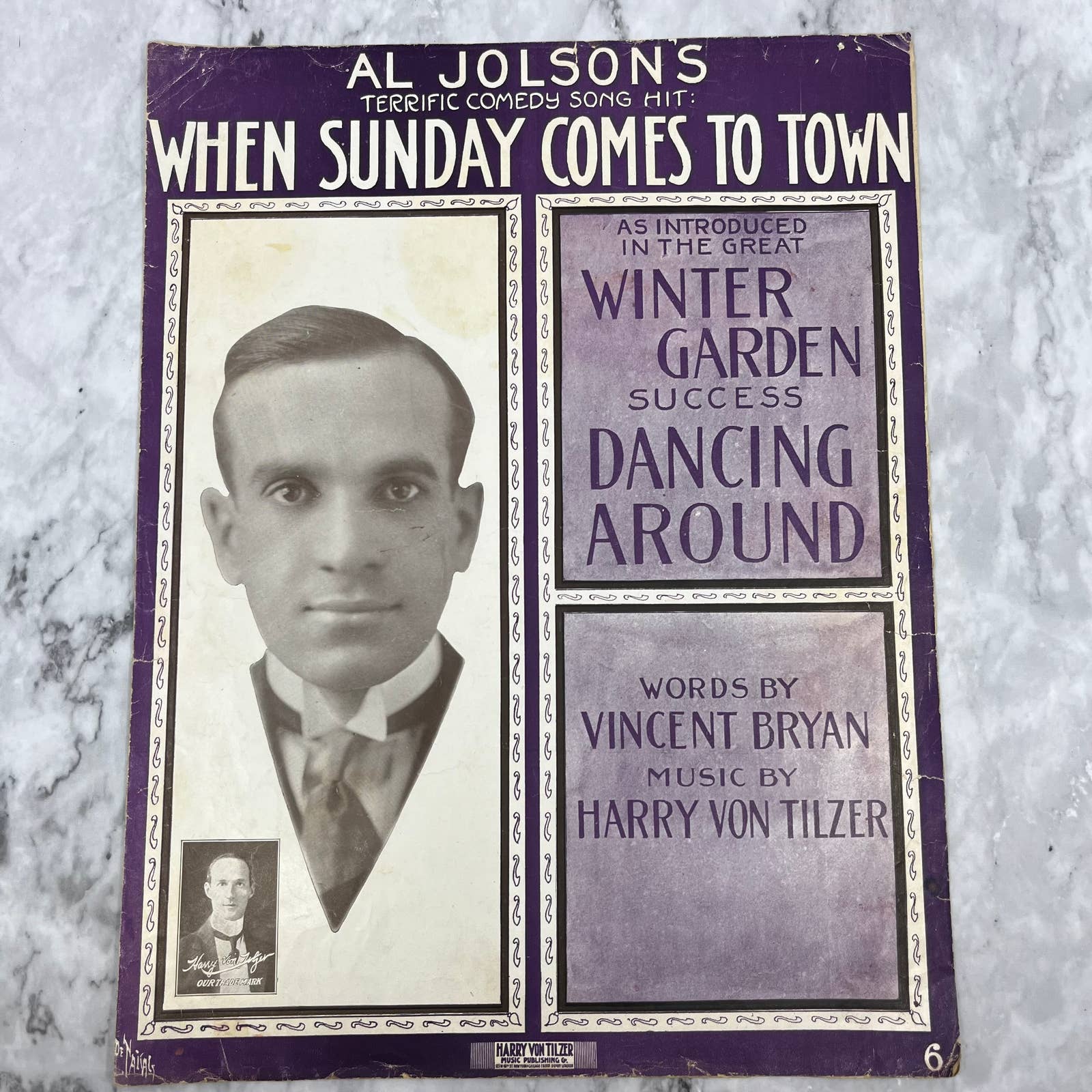 1915 Al Jolson When Sunday Comes to Town Sheet Music TJ4