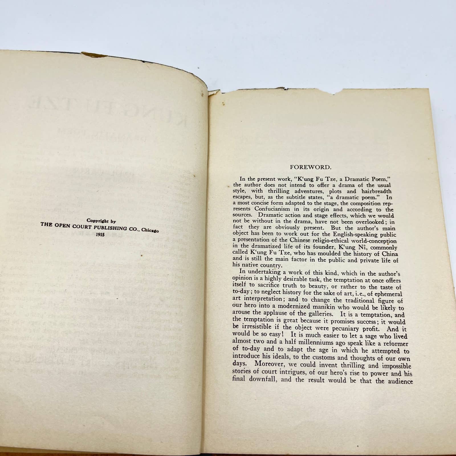1915 K'Ung Fu Tze: a Dramatic Poem By Paul Carus TF3