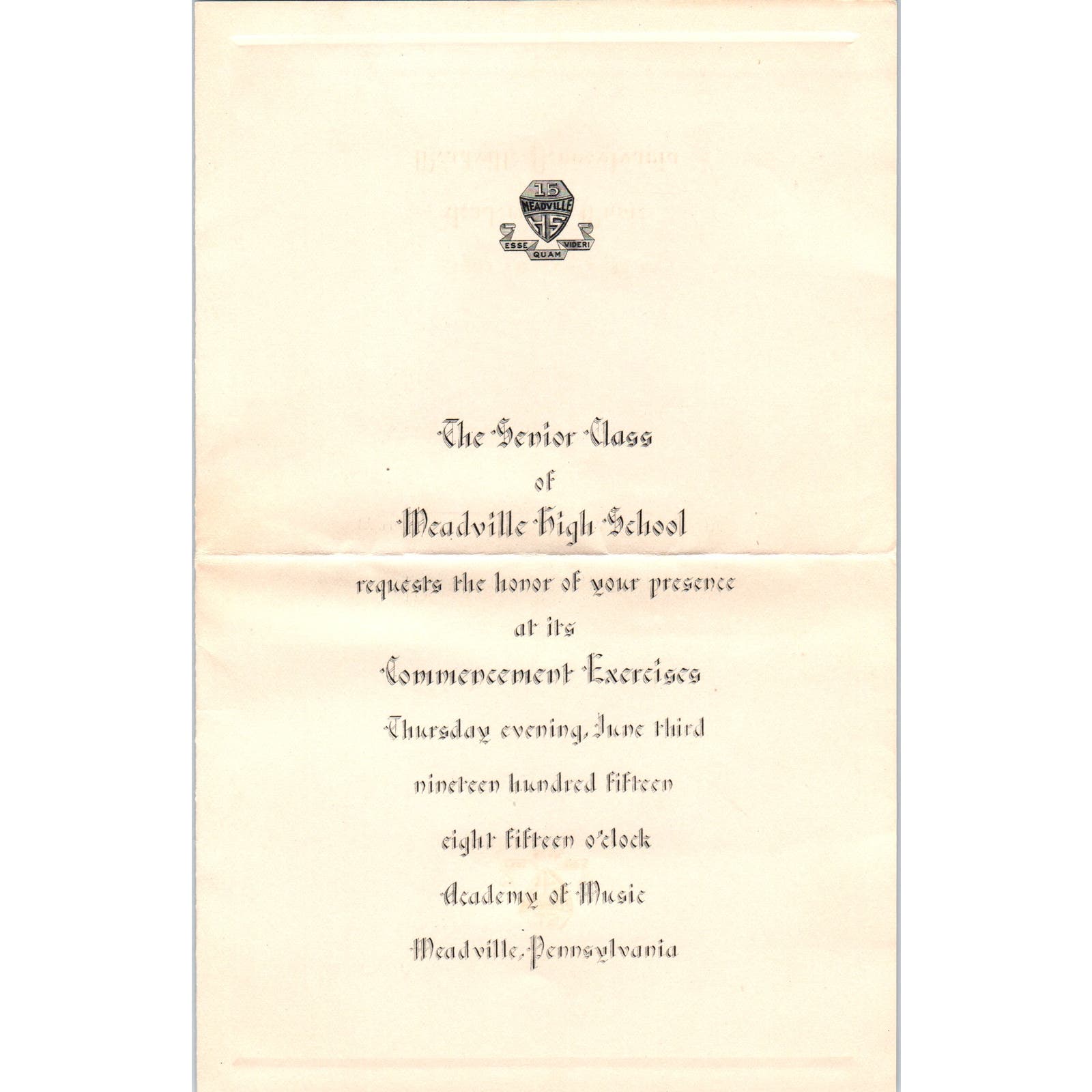 1915 Meadville High School Graduation Commencement Invitation PA AE9-X1