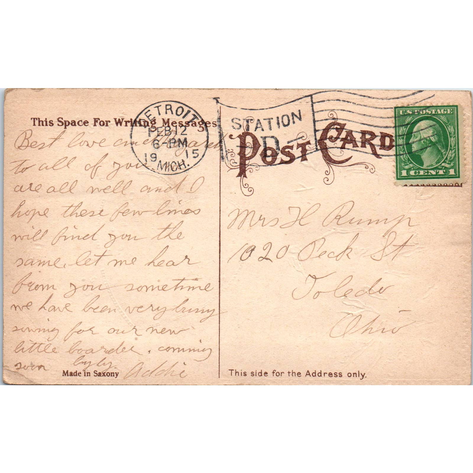 1915 Valentine Cupid Roses Heart Original Postcard TK1-24
