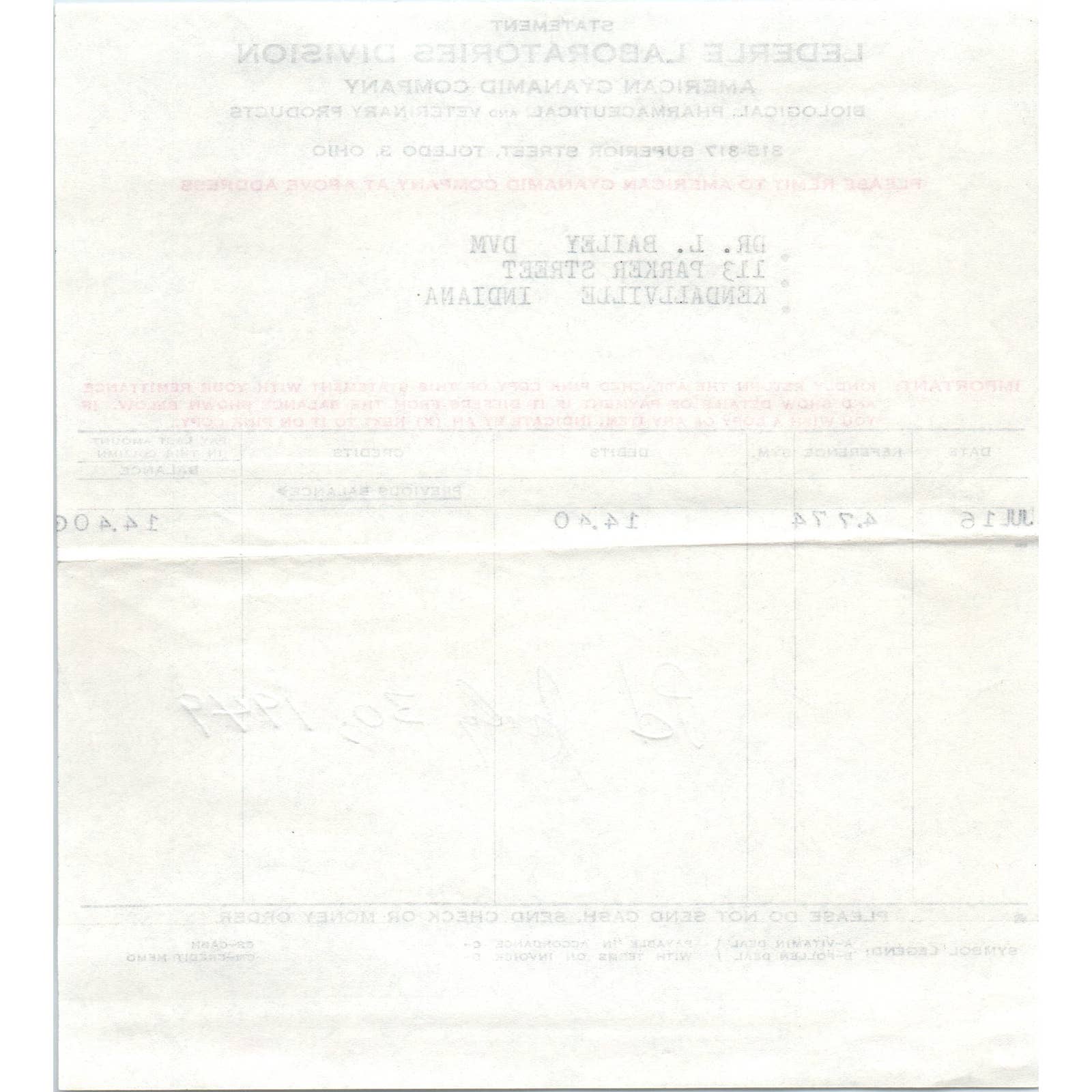 1916 Lederle Laboratories Division American Cyanamid Company Invoice AD8