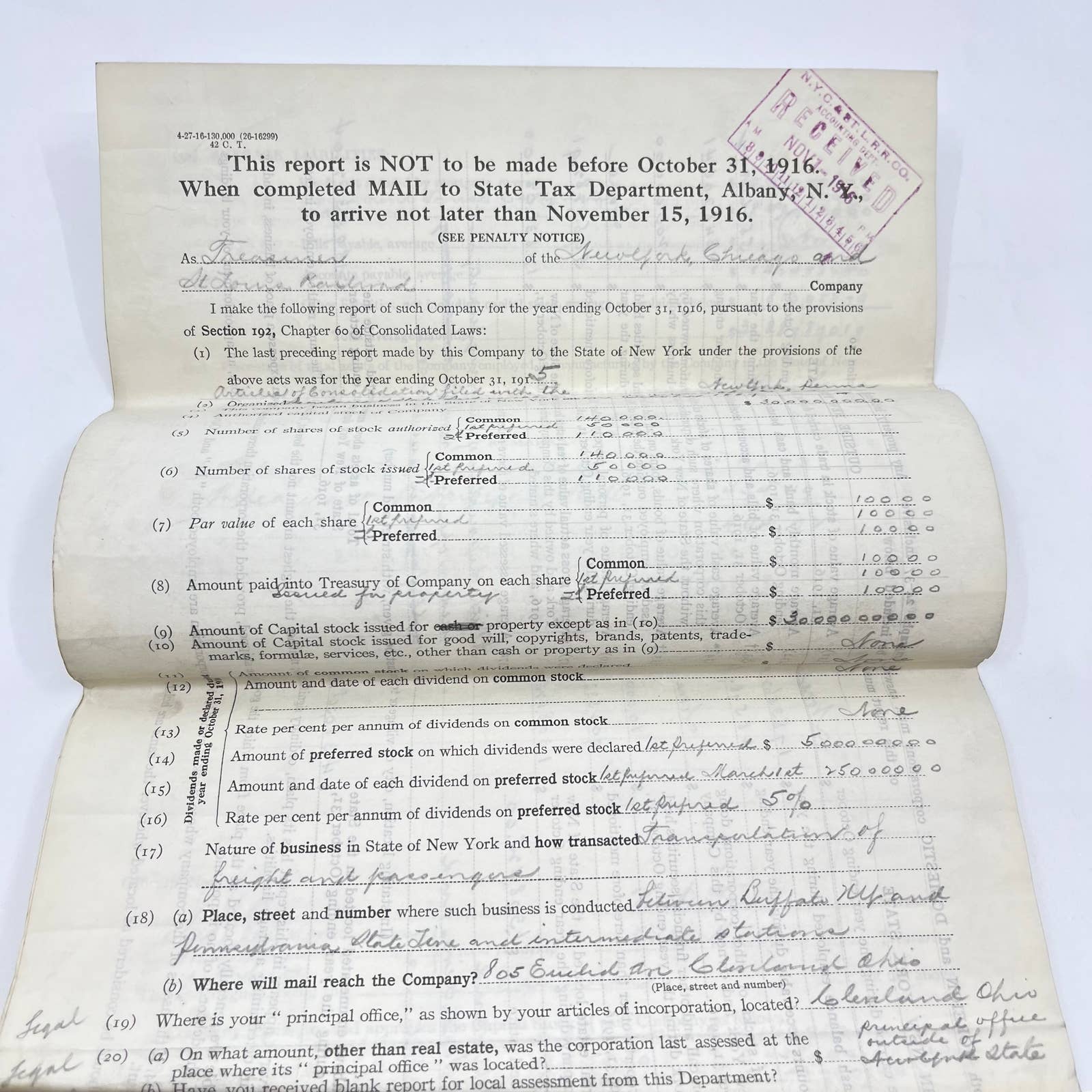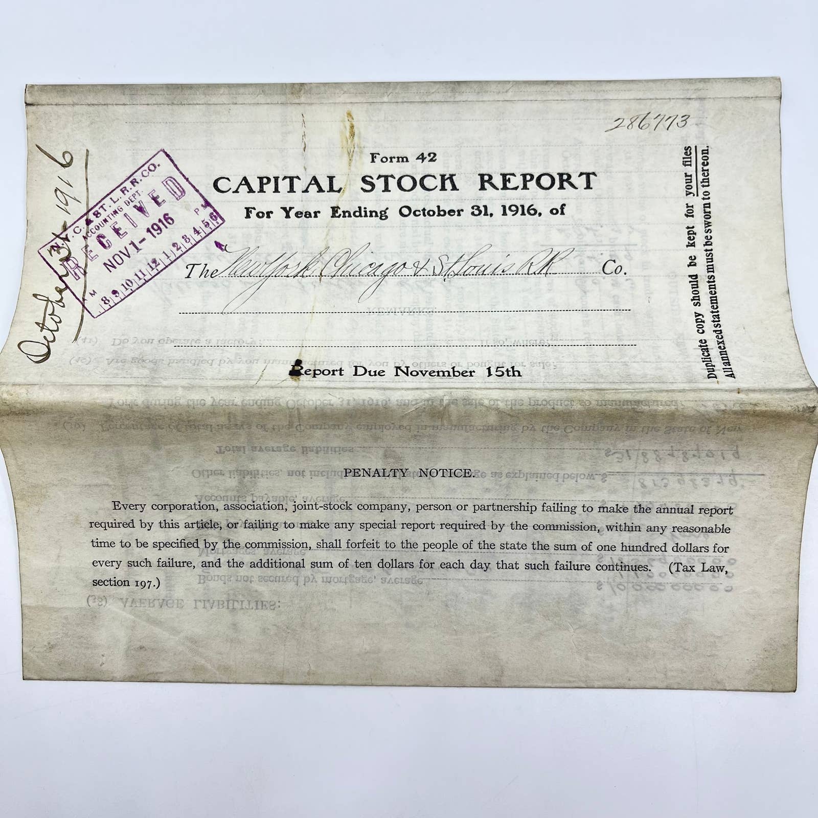 1916 New York, Chicago & St. Louis RR Railroad Capital Stock Report AB2
