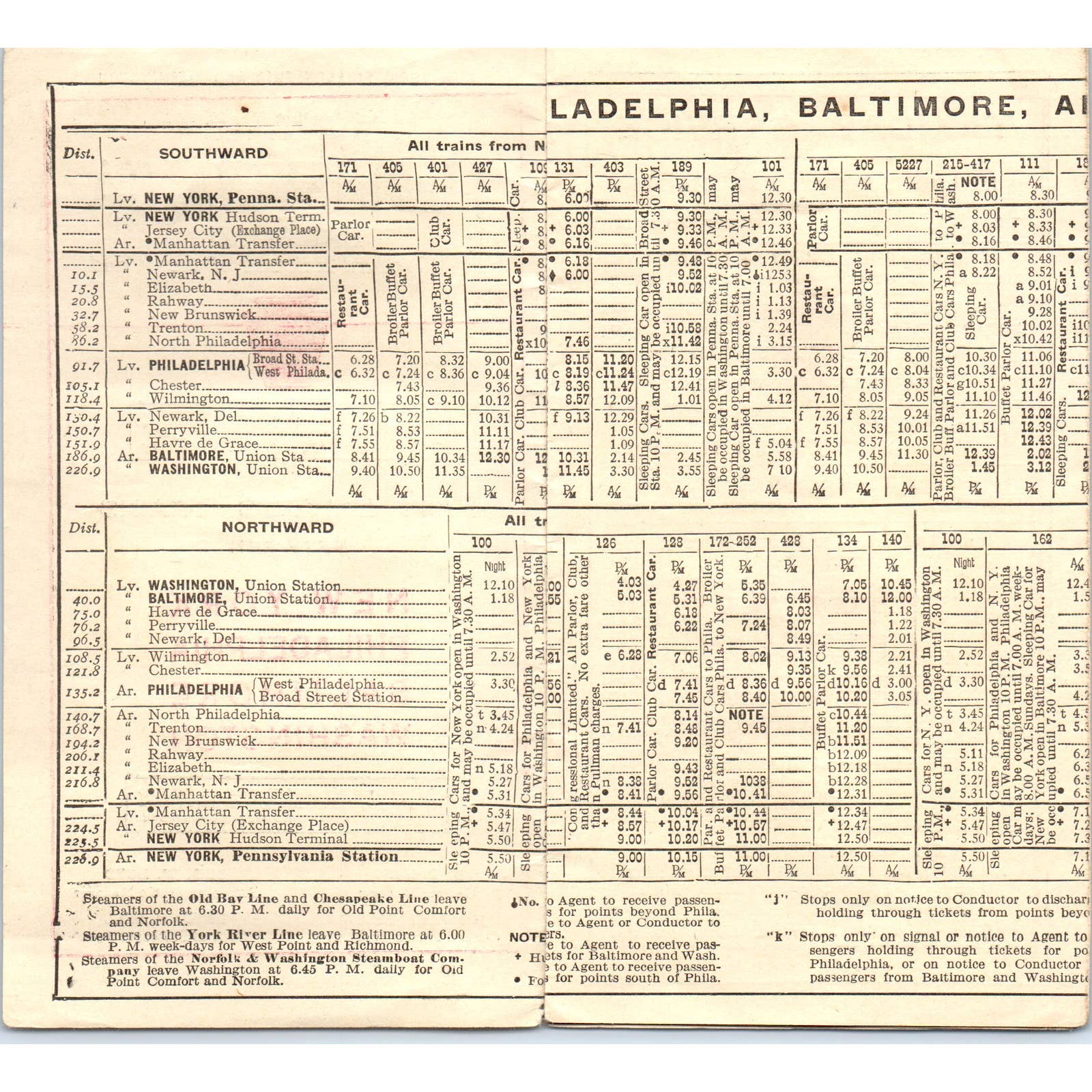 1916 Pennsylvania Railroad New York Philadelphia Baltimore Washington Timetable SE8