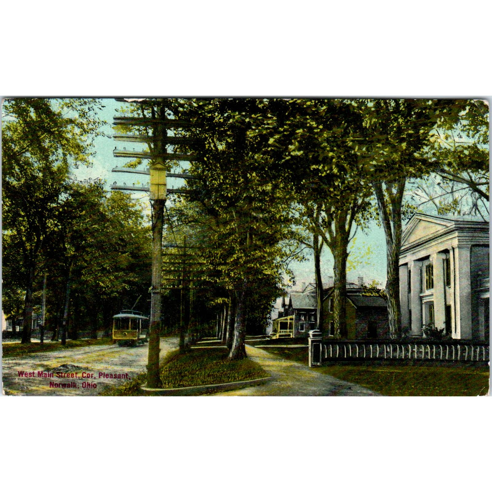 1916 Postcard West Main Street Cor. Pleasant - Norwalk OH TD8-O2