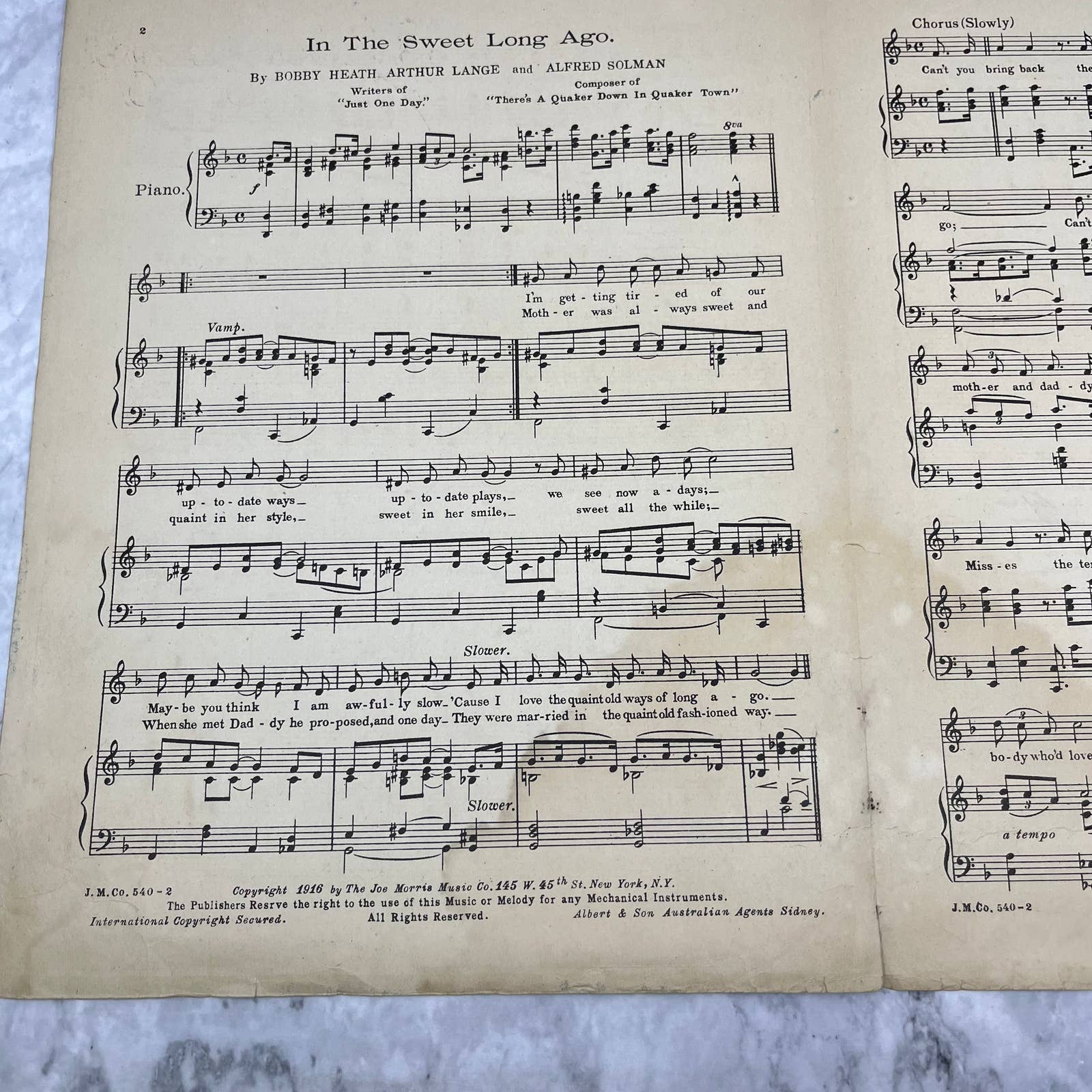 1916 Sheet Music In the Sweet Long Ago Bobby Heath Arthur Lange M1