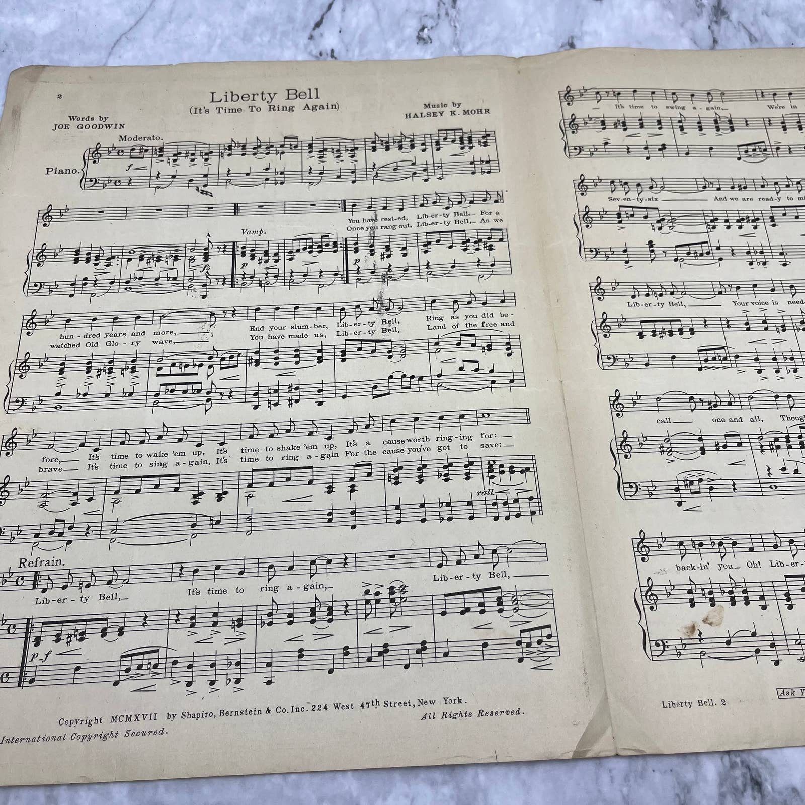 1917 Liberty Bell (It's Time To Ring Again) Antique Sheet Music Patriotic Mohr TJ4