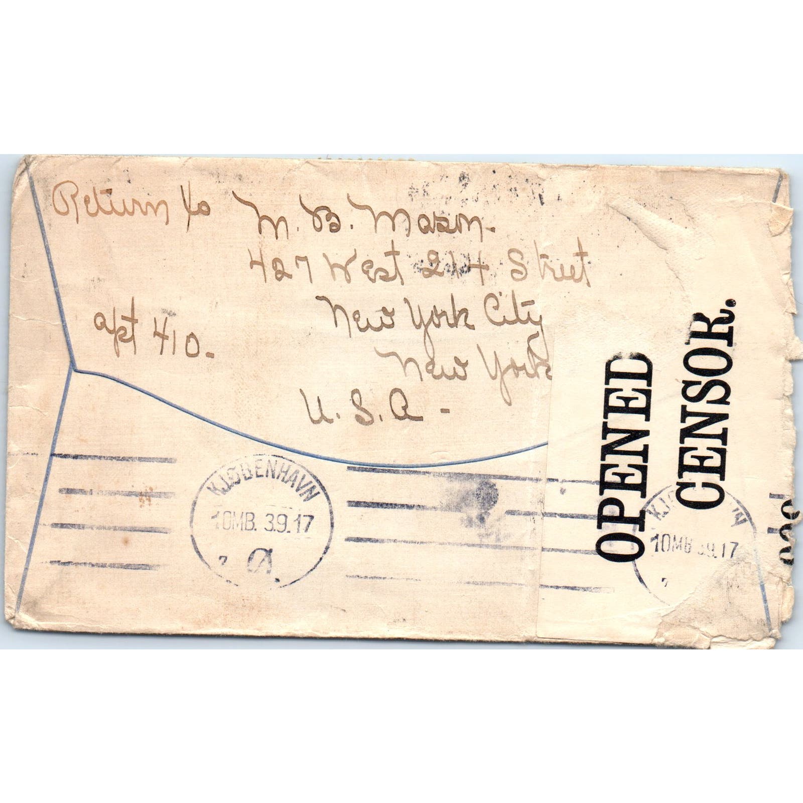 1917 New York City to Copenhagen Denmark Carl Johansgade Postal Cover Envelope AE7