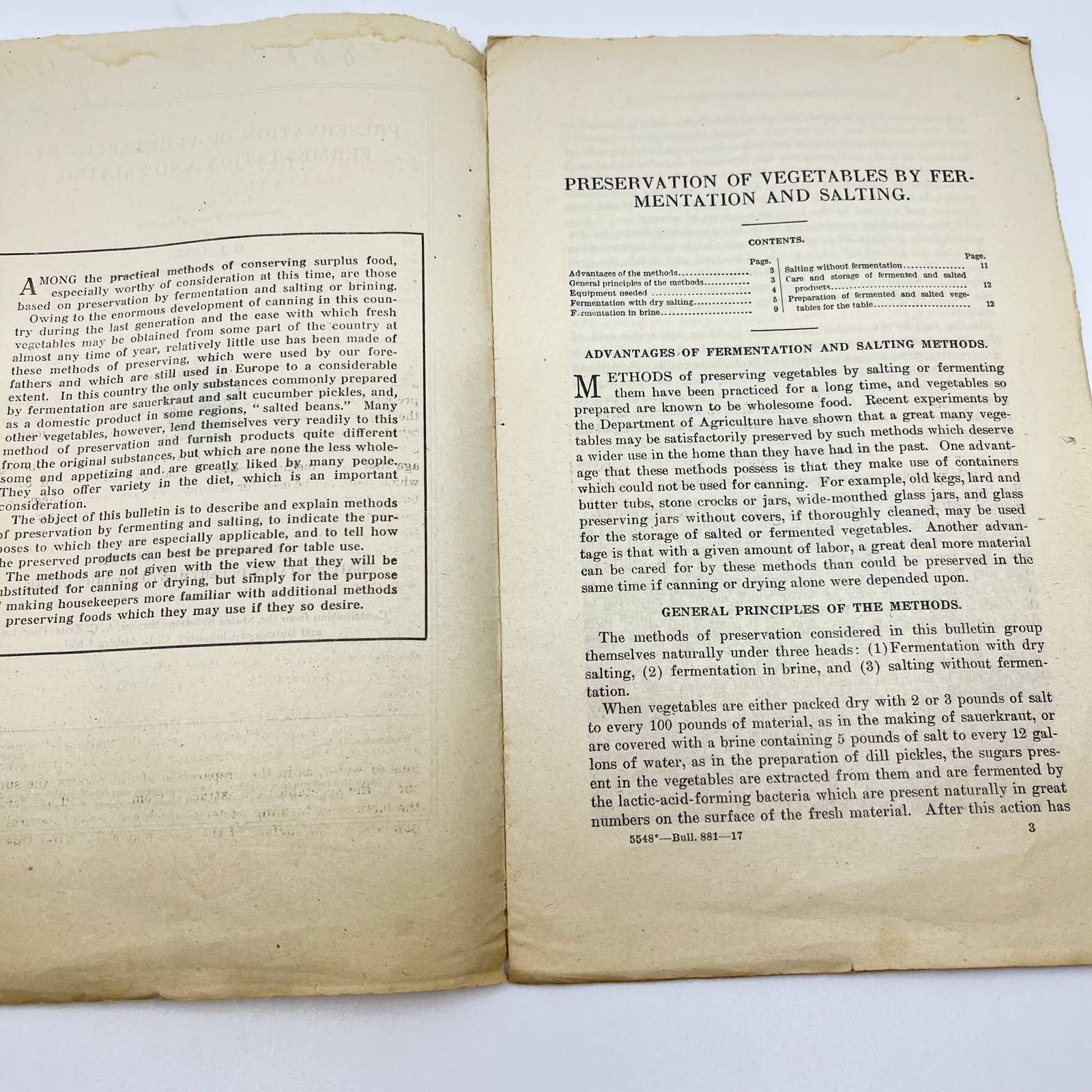 1917 Preservation of Vegetables by Fermentation & Salting Dept of Agriculture TF7