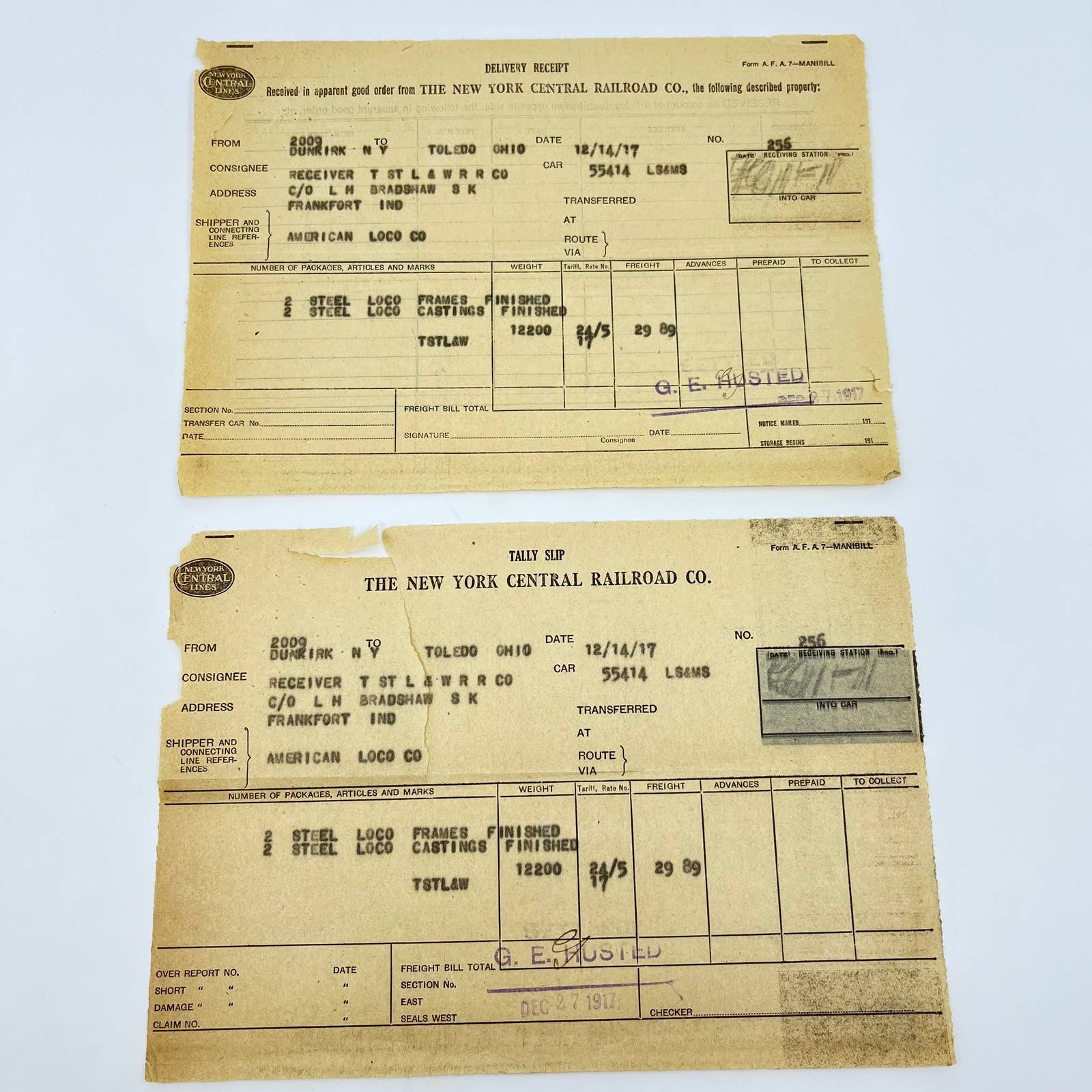 1917 The New York Central Lines Railroad RR Tally Slip Receipt Lot of 2 AB1
