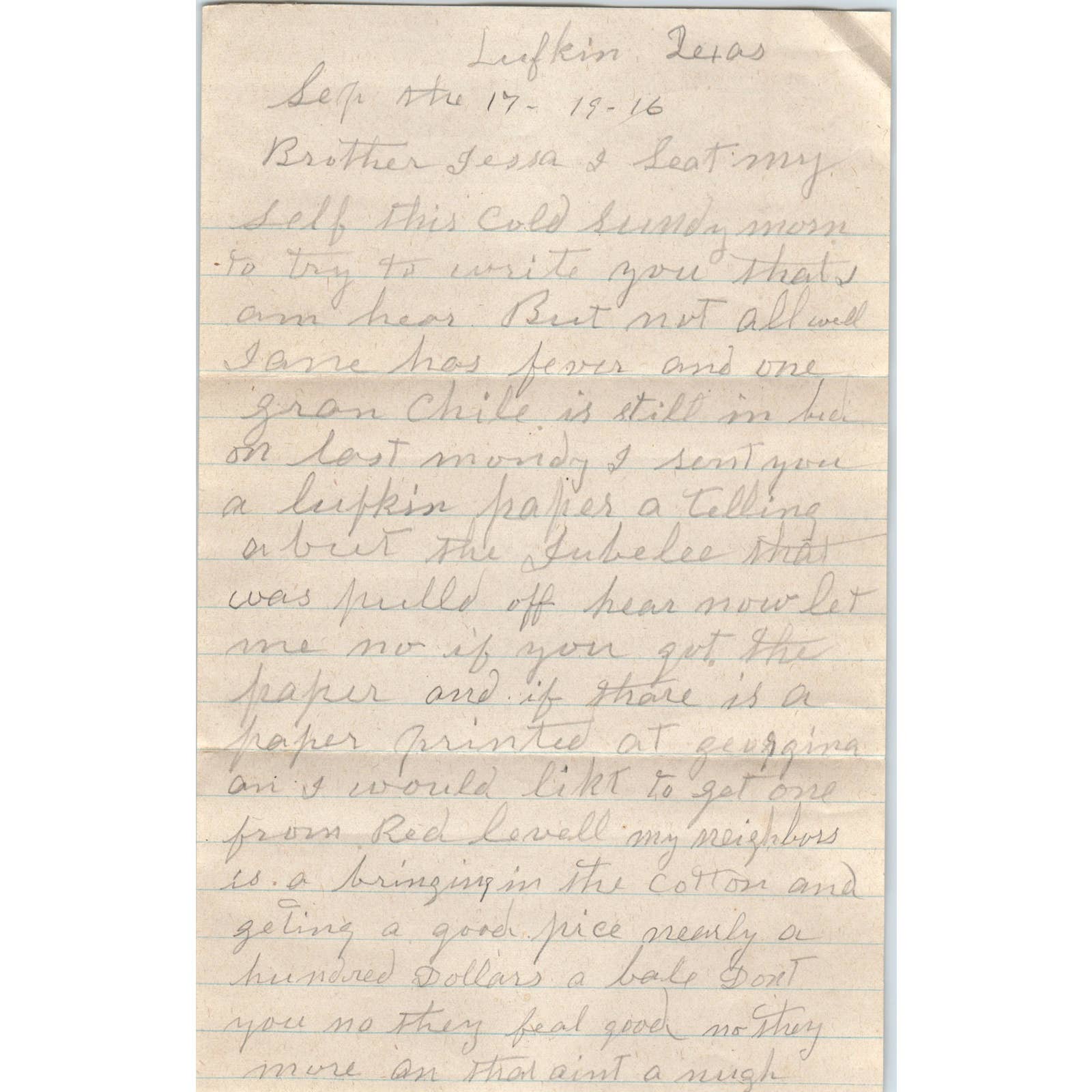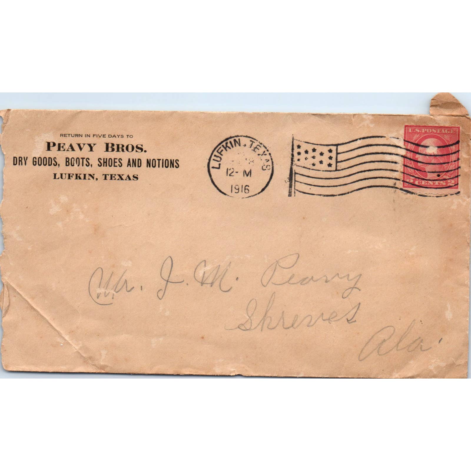 1918 Letter and Envelope W.A. Peavy Lufkin TX to J.M. Peavy Shreve AL AD6