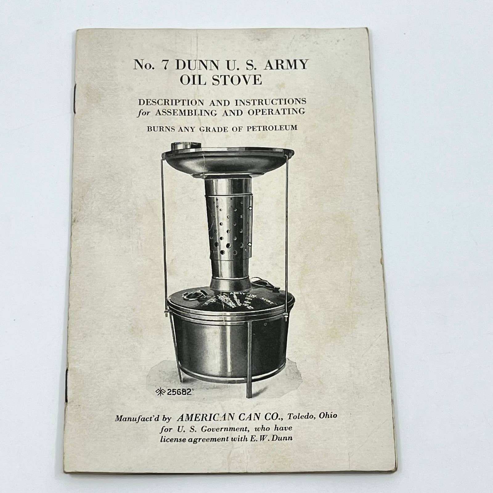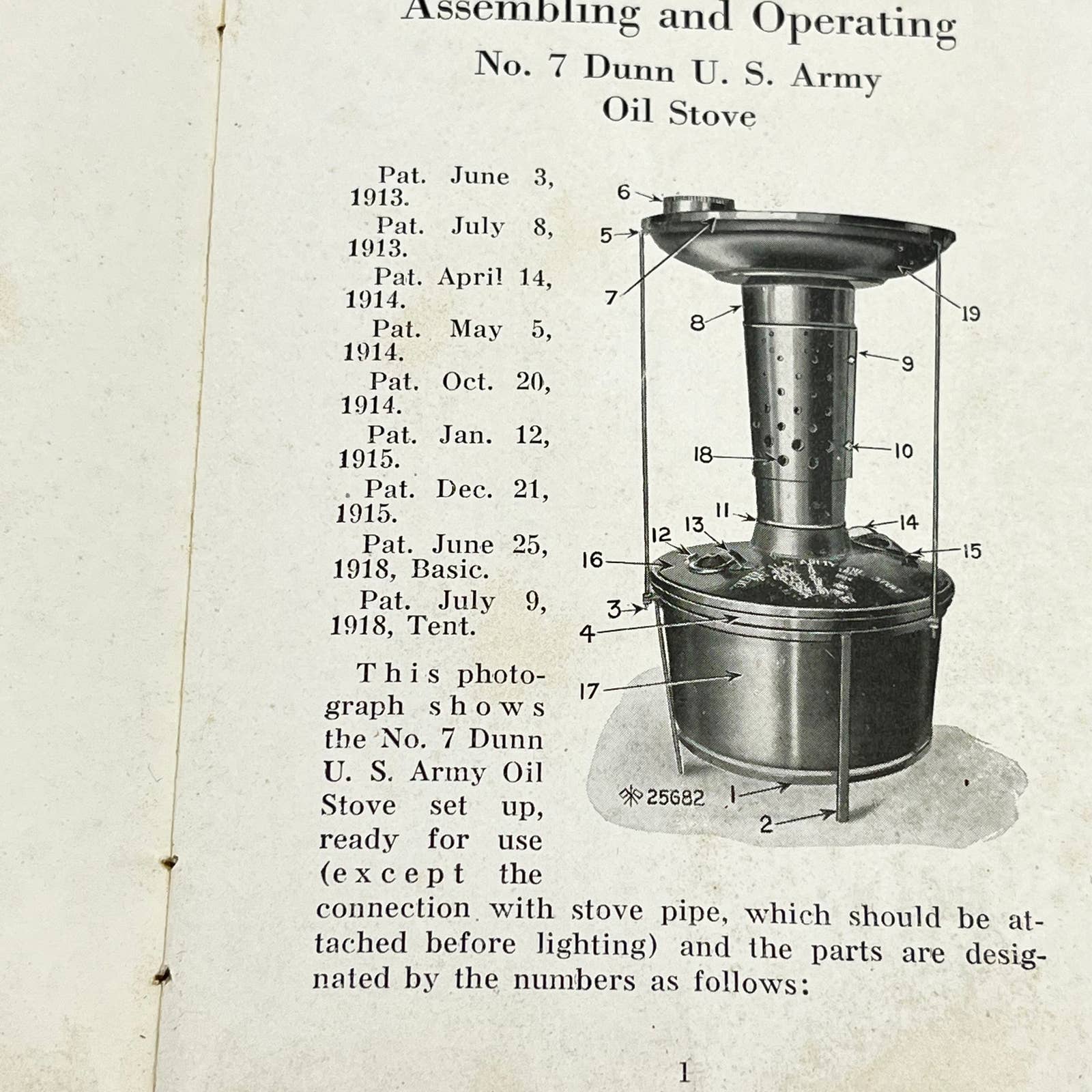 1918 WWII Dunn US Army Oil Stove Instruction Manual American Can Co. Toledo SD3