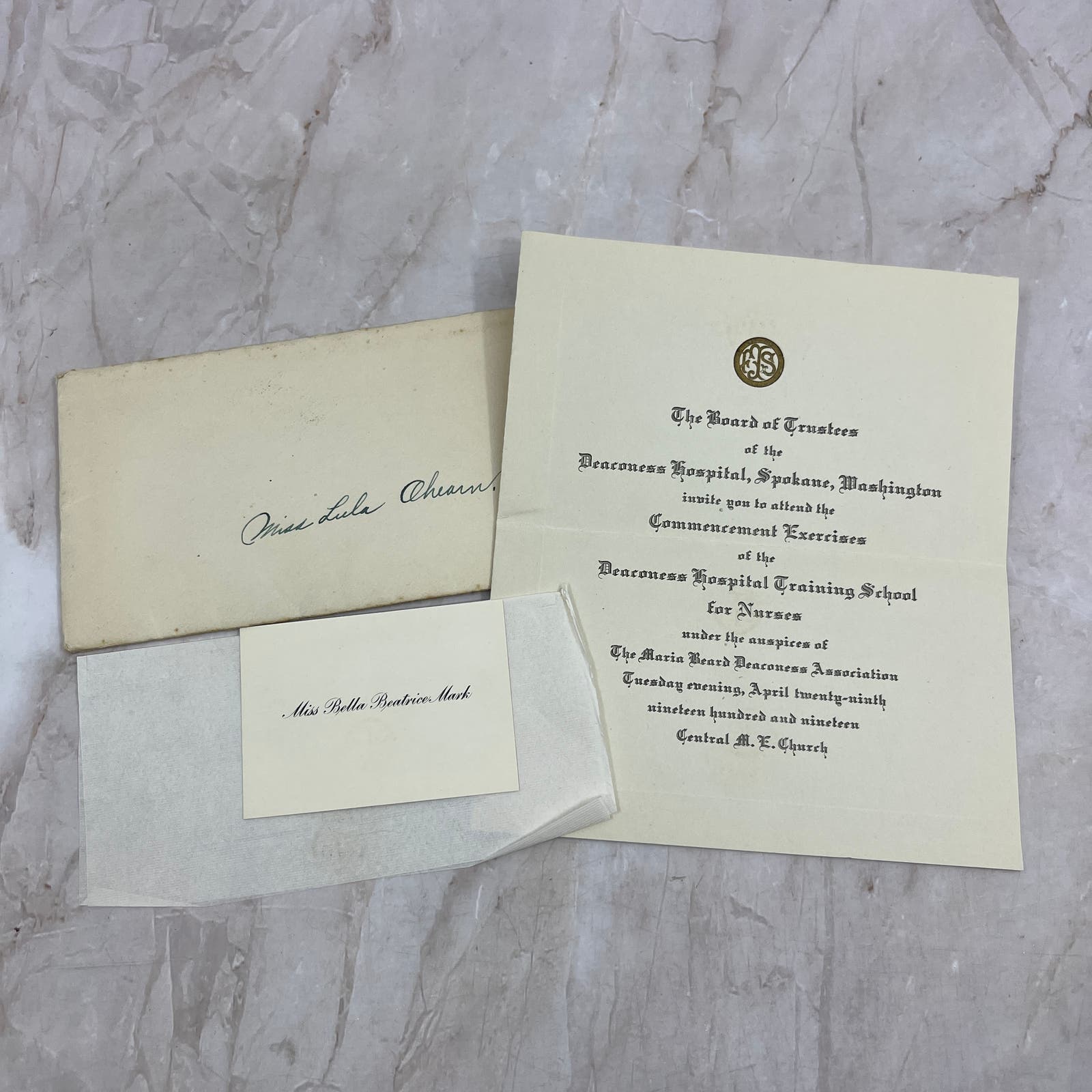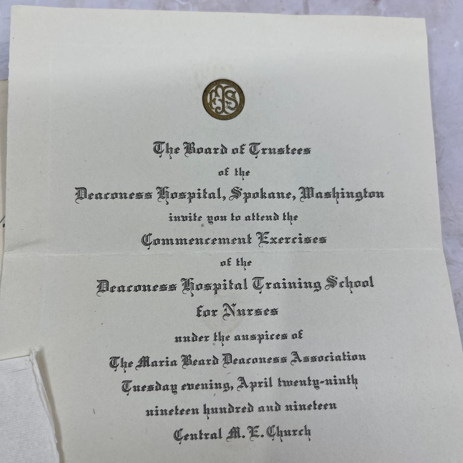 1919 Deaconess Nurse Training School Commencement Invitation Spokane WA TG9-E1