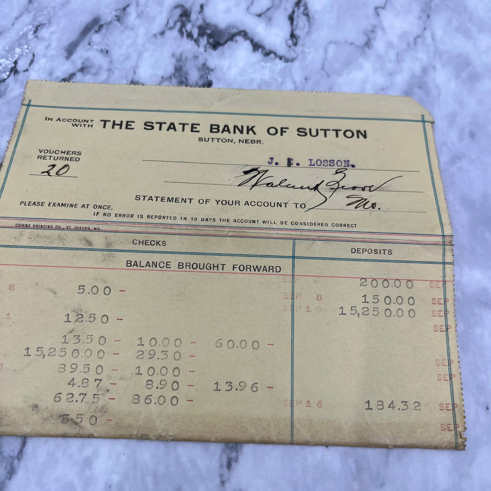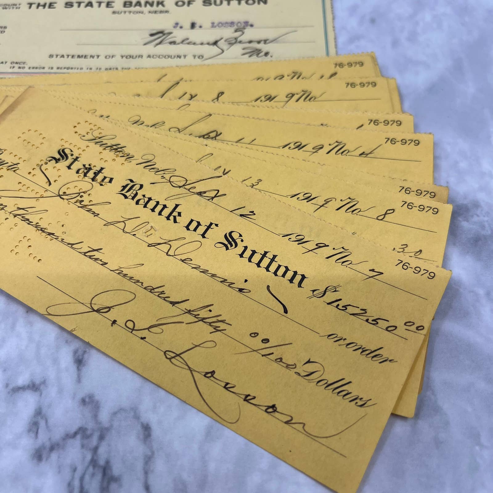 1919 State Bank of Sutton NE Statement & Checks J.L. Losson EA4