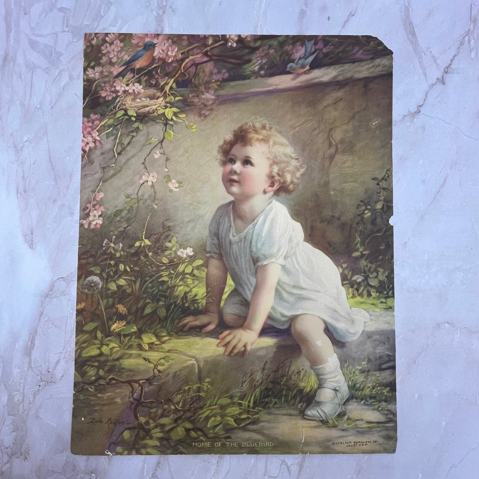 1920's Zula Kenyon Home of the Bluebird Art Print Lithograph 10x13 FL6-3