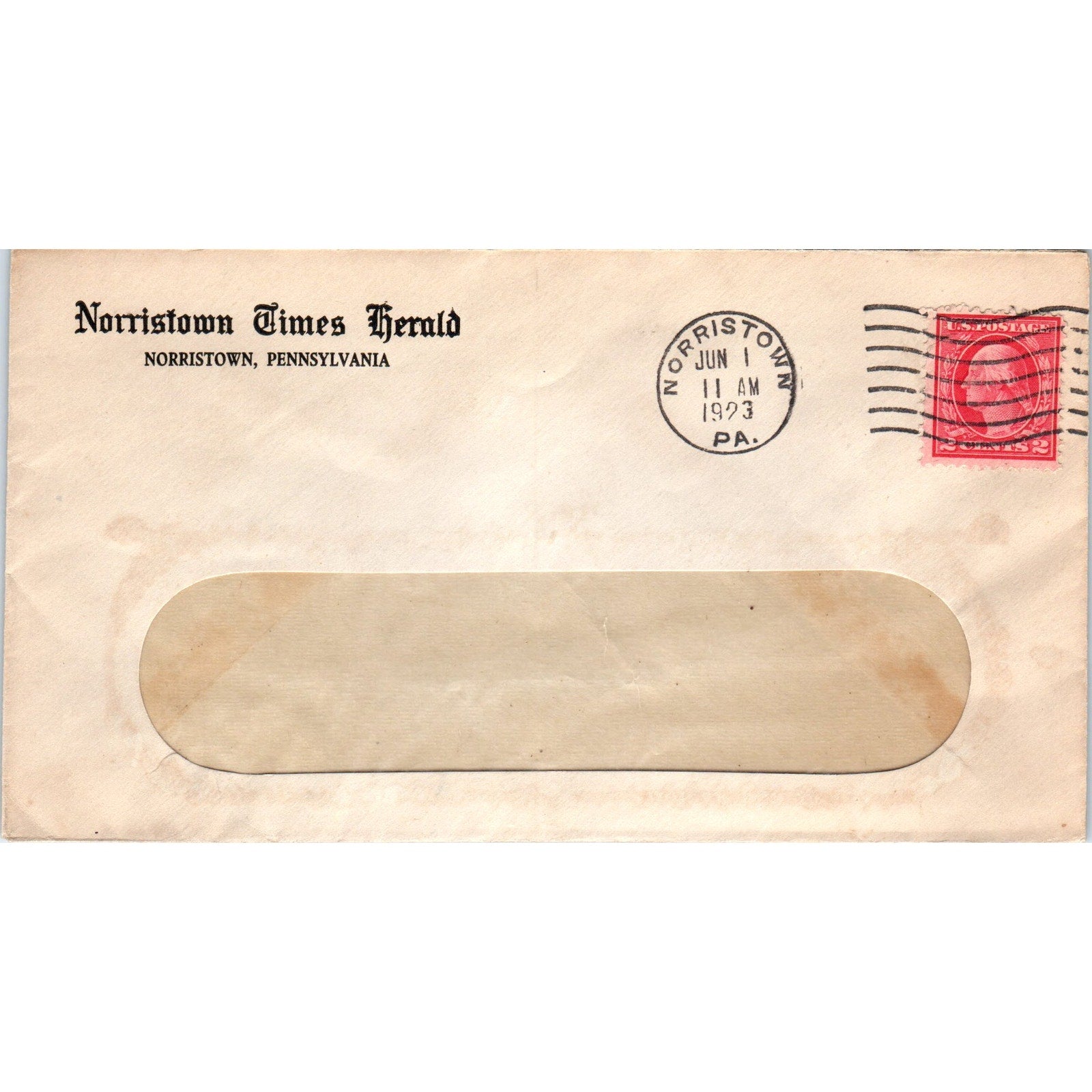 1921 Norristown Times Herald Pennsylvania Postal Cover Envelope TG7-PC1