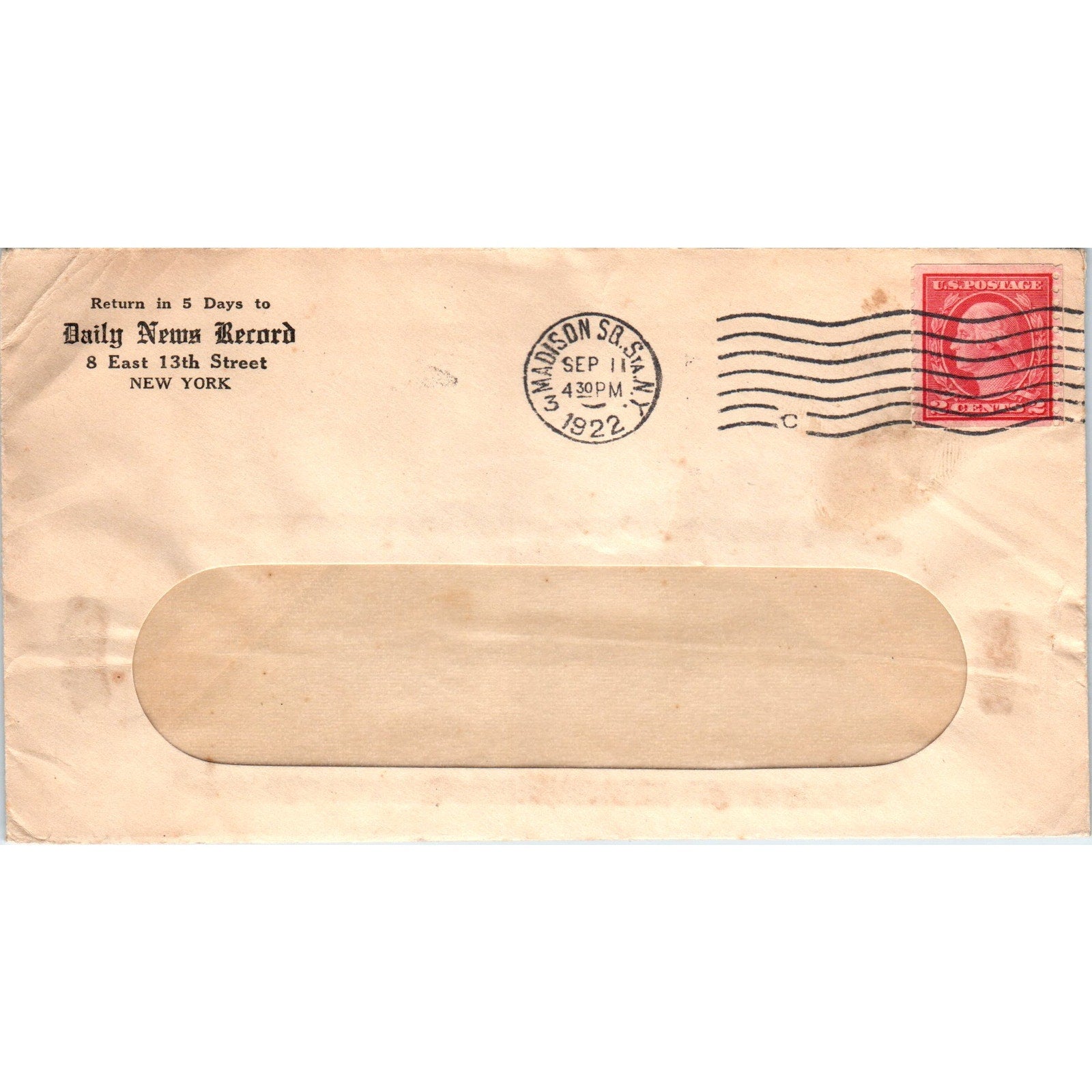 1922 Daily News Record NY Madison SB Station Postal Cover Envelope TG7-PC1