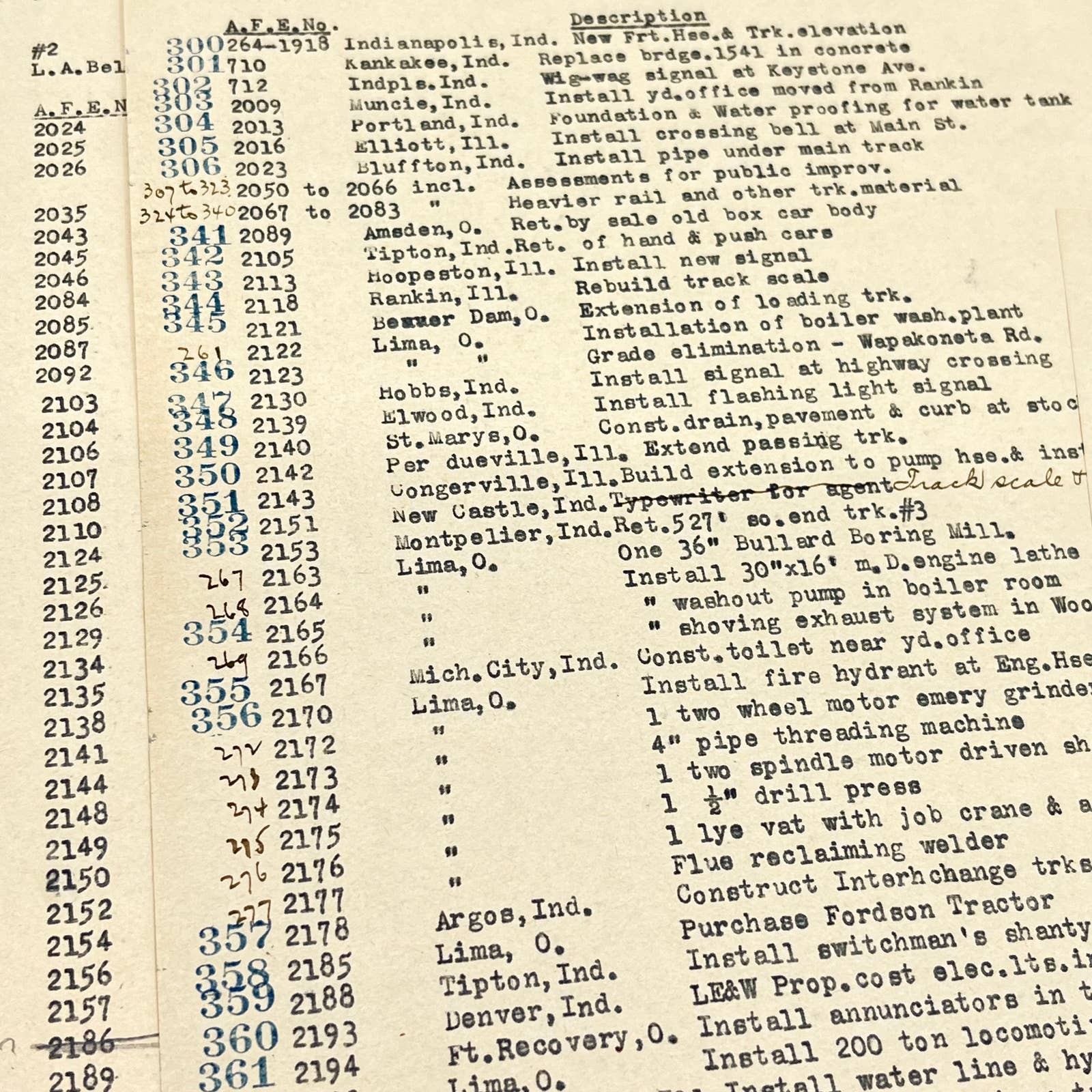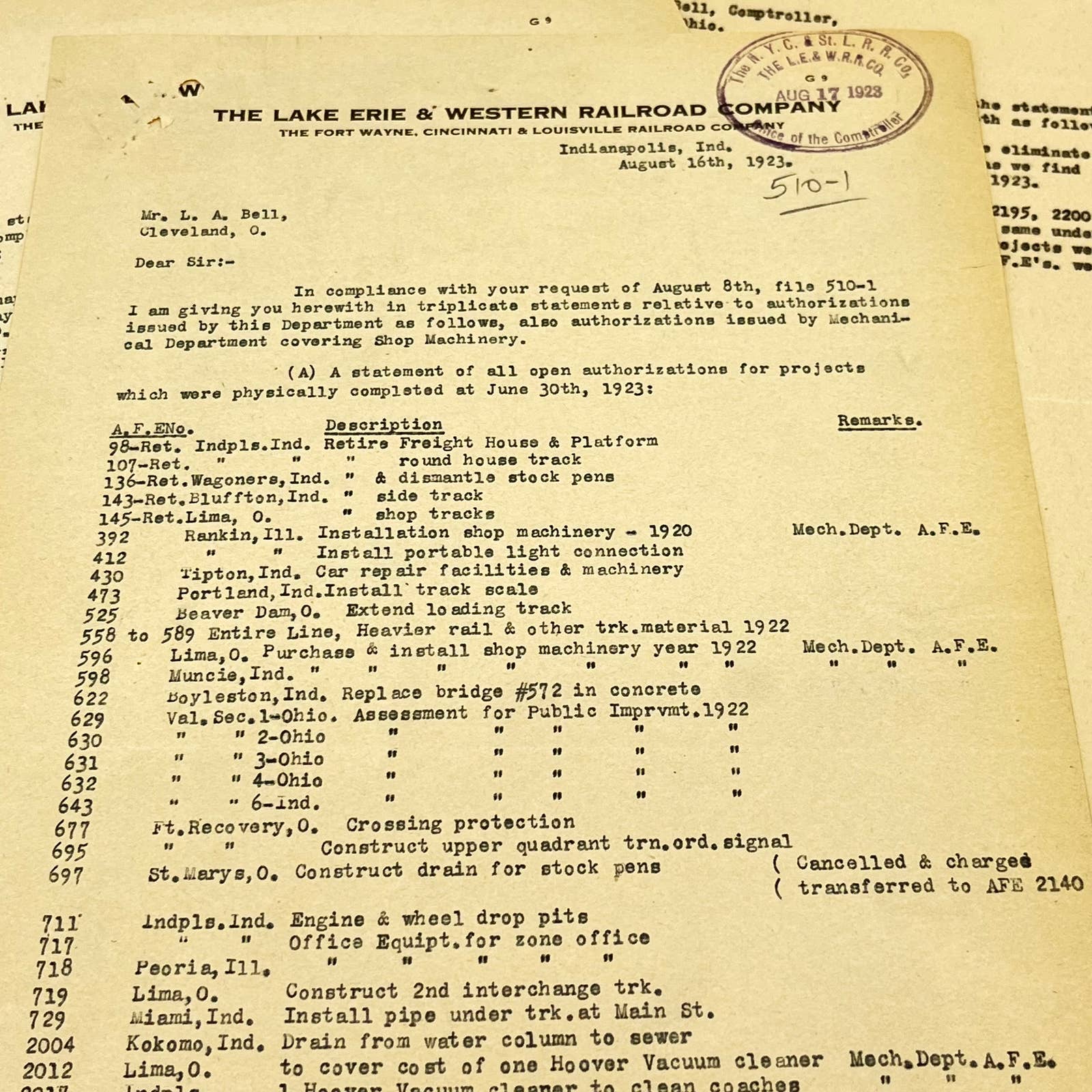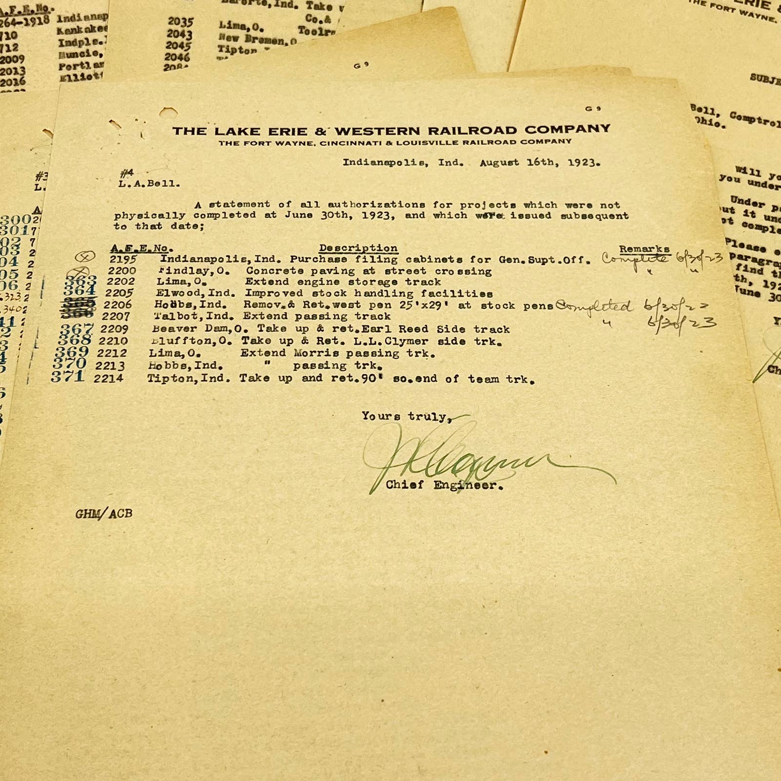 1923 Lake Erie & Western Railroad Co. Department Authorization Memo AB1-5