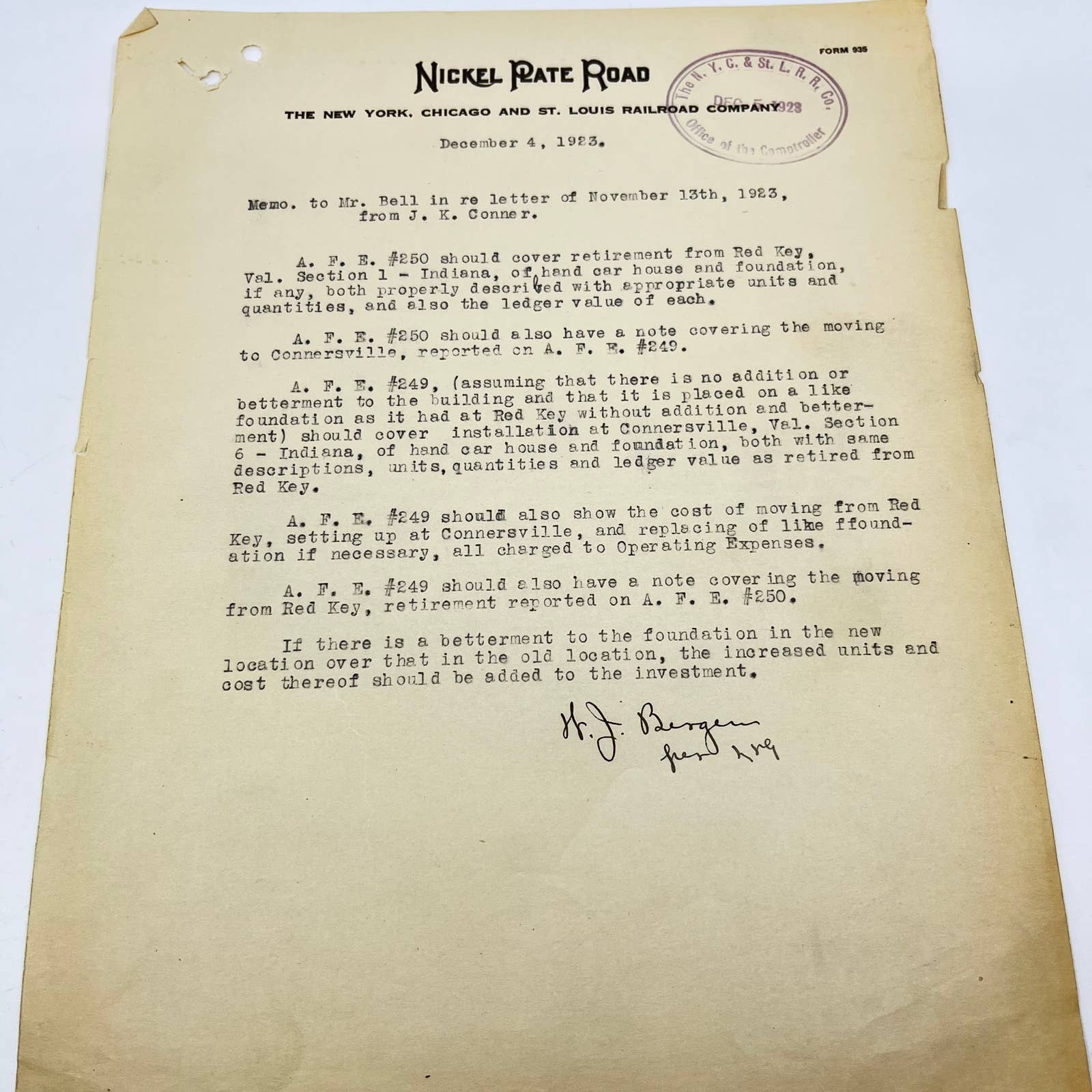 1923 New York, Chicago & St Louis Railroad Co. Letterhead Memo Lot of 2 AA9-4