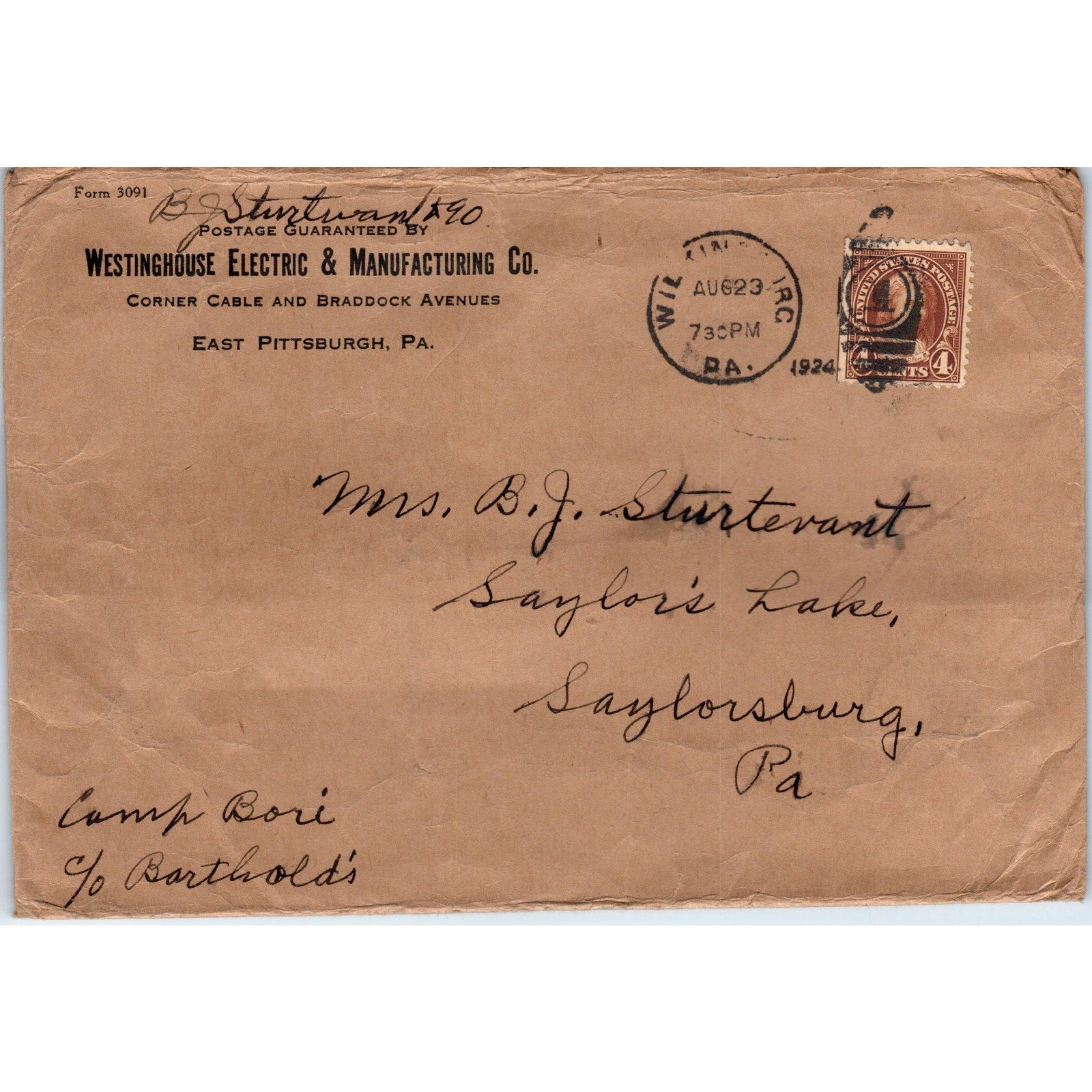 1924 Westinghouse Electric & Mfg East Pittsburgh to Saylorsburg Envelope TG7-PC3