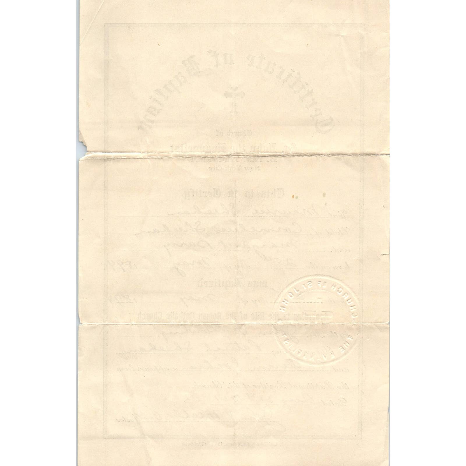 1927 Certificate of Baptism St. John The Evangelist NYC Maurice Sheehan AD4